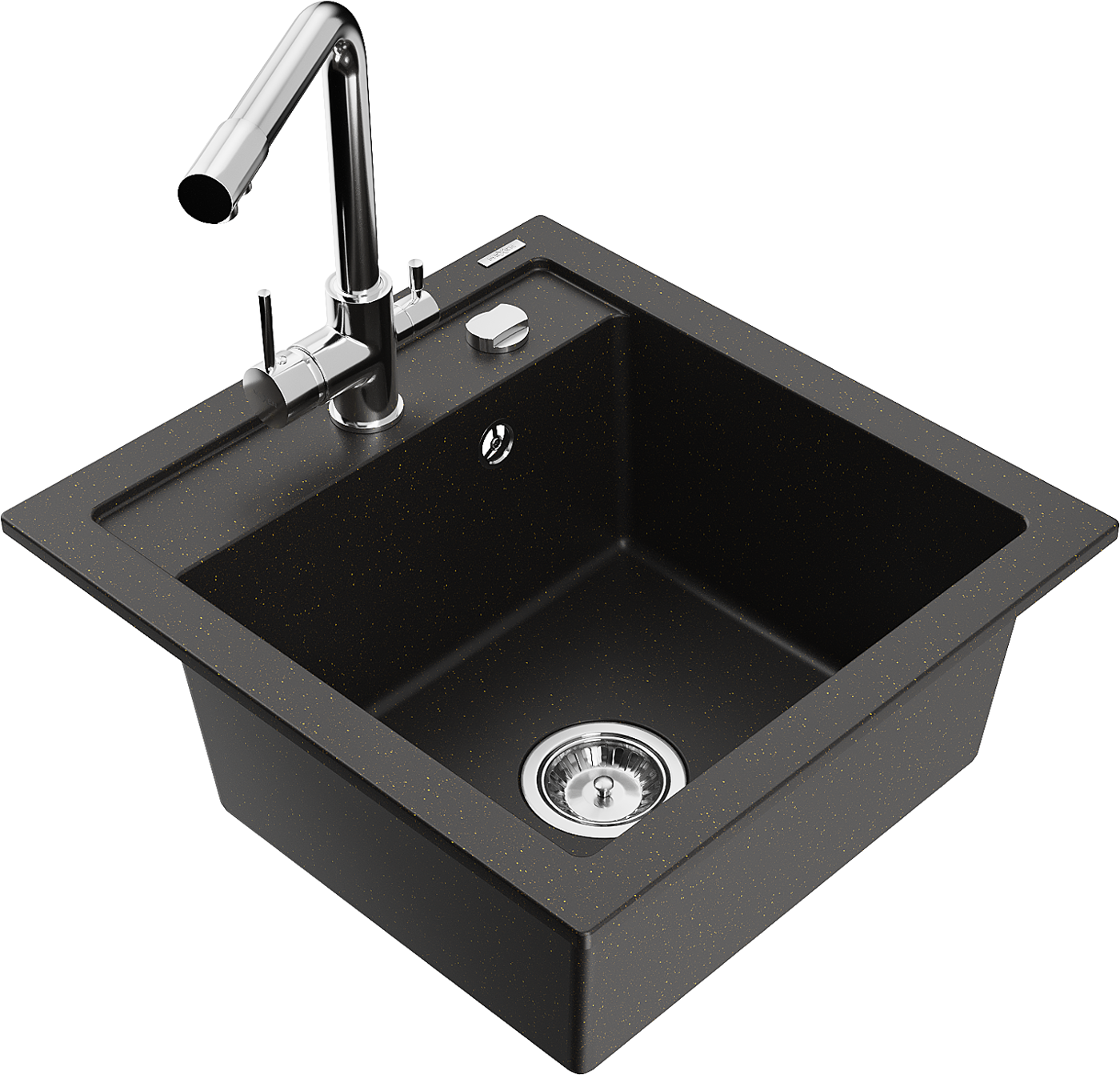 Mexen Vito granitový dřez s 1 komorou a kuchyňskou baterií Duero, černý/zlatý metalik - 6503-75-671600-00