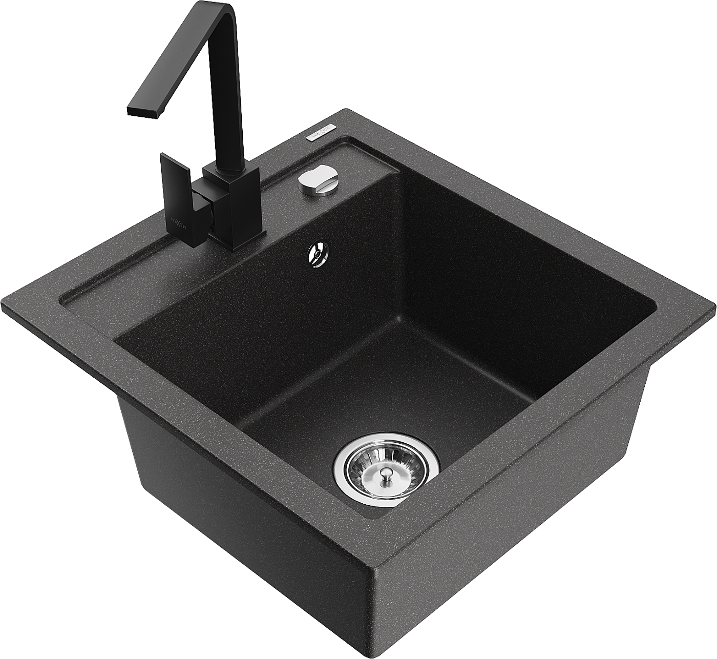 Mexen Vito granitový dřez 1-komorový s kuchyňskou baterií Rita, černý skvrnitý - 6503-76-670300-70