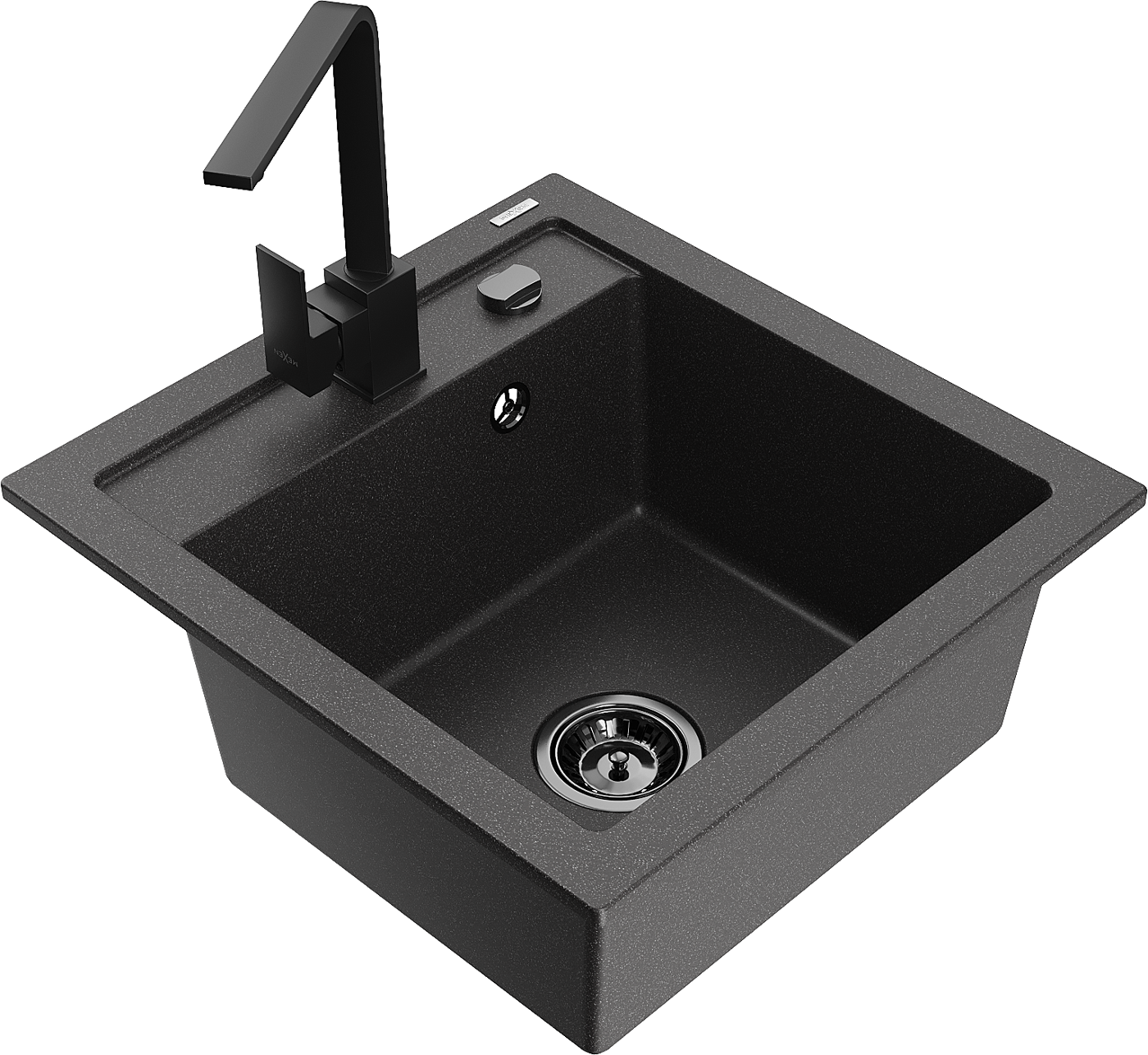 Mexen Vito granitový dřez 1-komorový s kuchyňskou baterií Rita, černý skvrnitý - 6503-76-670300-70-B