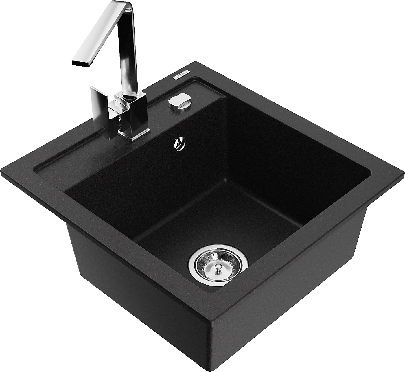 Mexen Vito granitový dřez 1-komorový s kuchyňskou baterií Rita, černý - 6503-77-670300-00