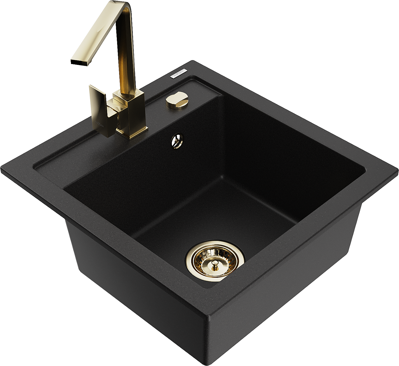 Mexen Vito granitový dřez 1-komorový s kuchyňskou baterií Rita, černý - 6503-77-670300-50