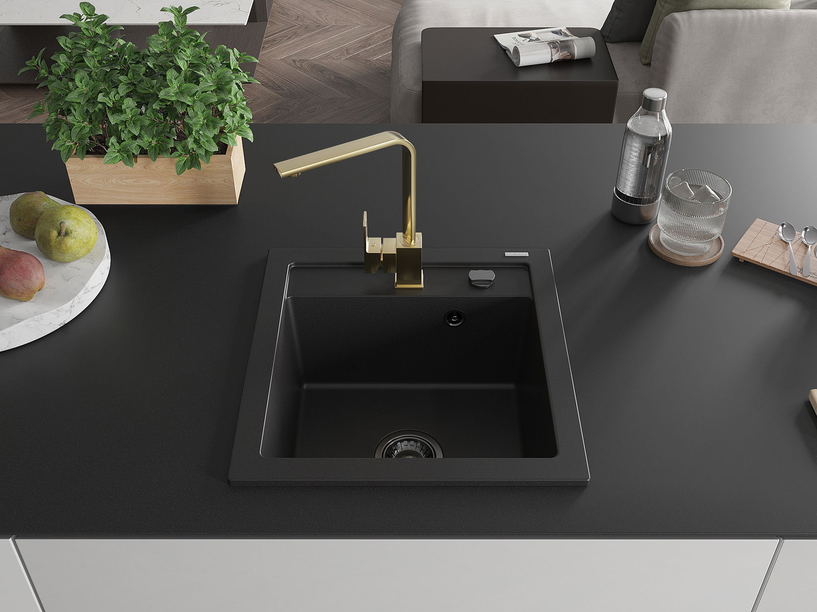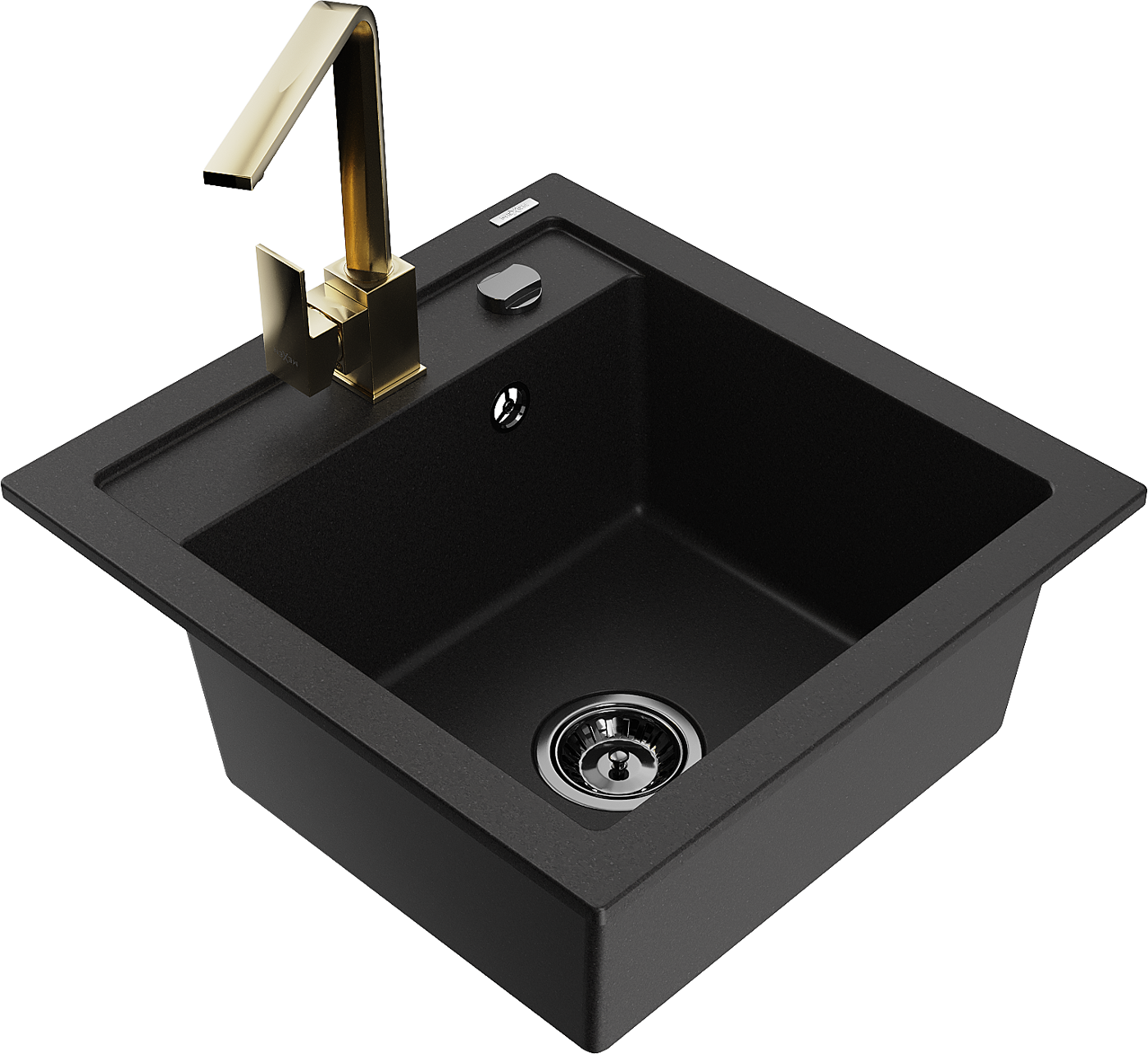 Mexen Vito granitový dřez 1-komorový s kuchyňskou baterií Rita, černý - 6503-77-670300-50-B