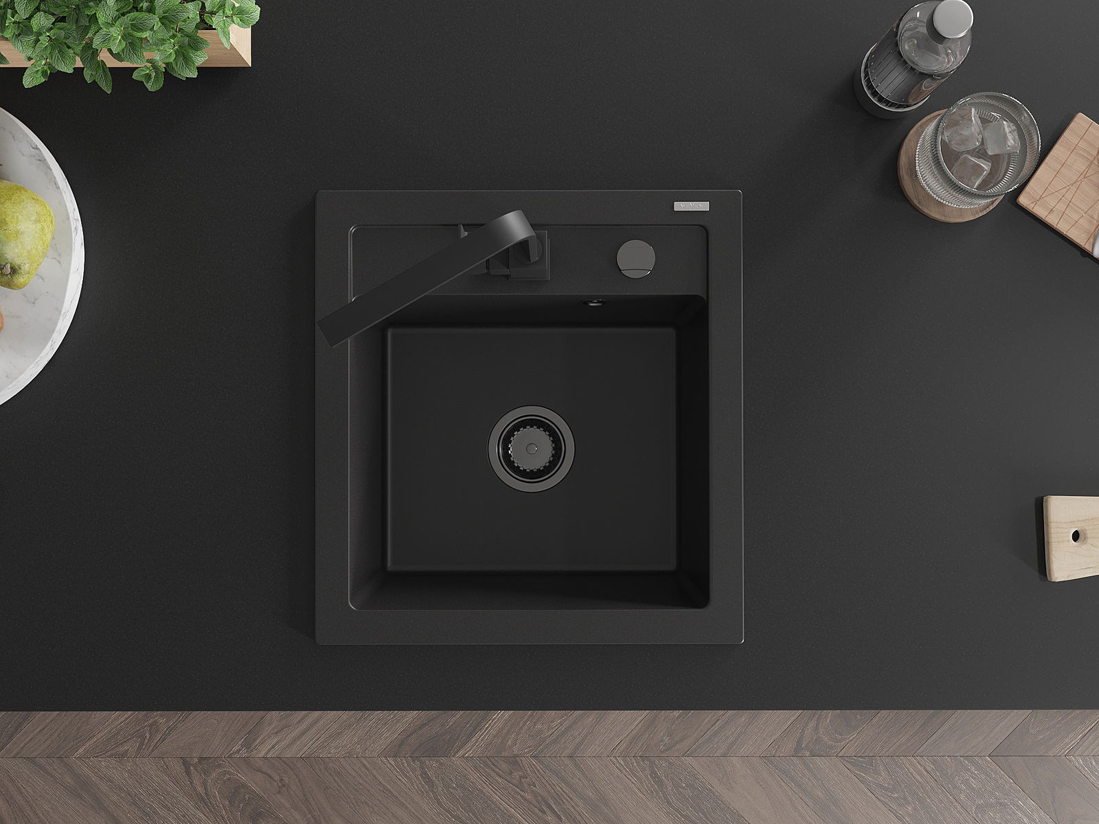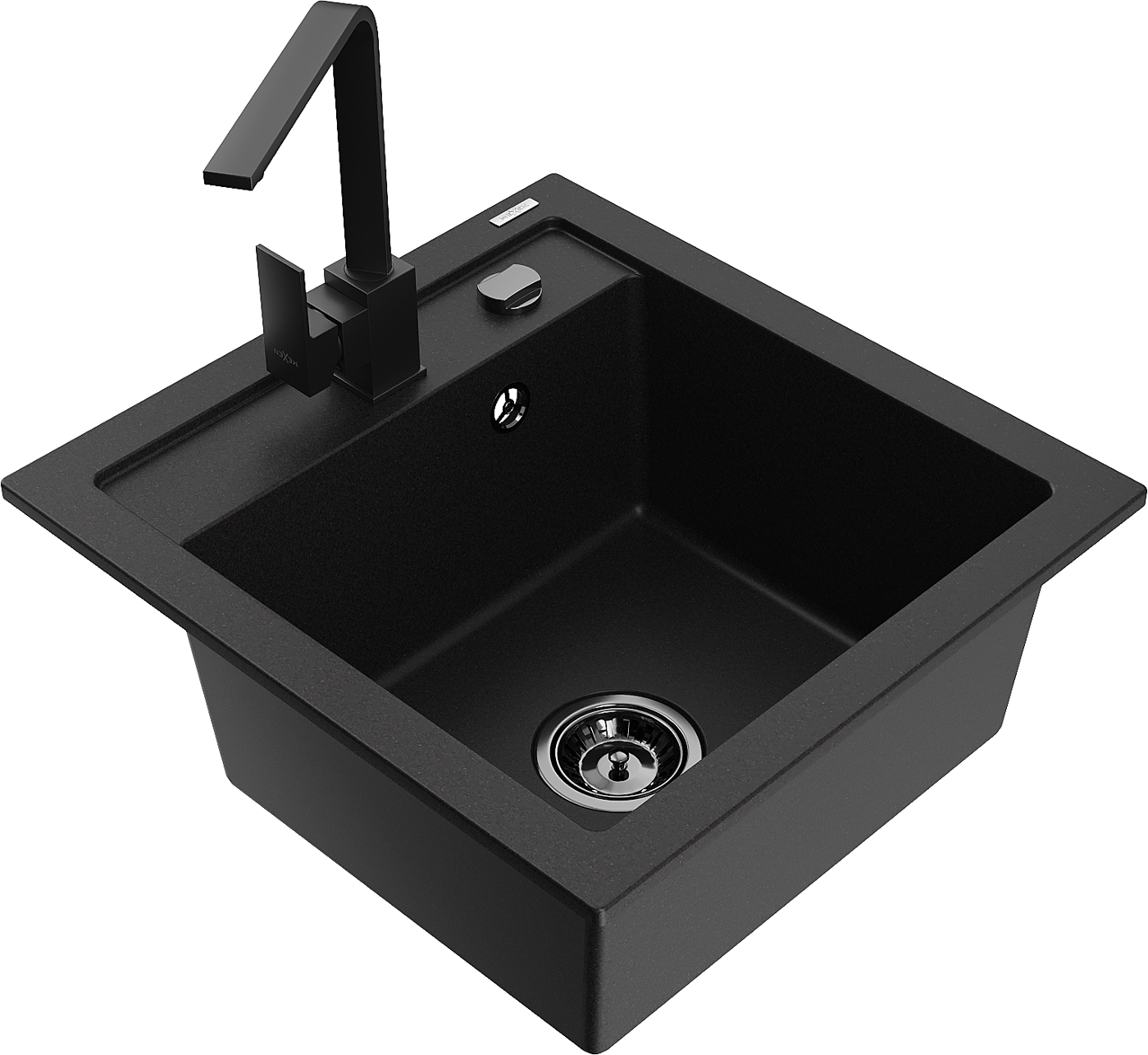 Mexen Vito granitový dřez 1-komorový s kuchyňskou baterií Rita, černý - 6503-77-670300-70-B