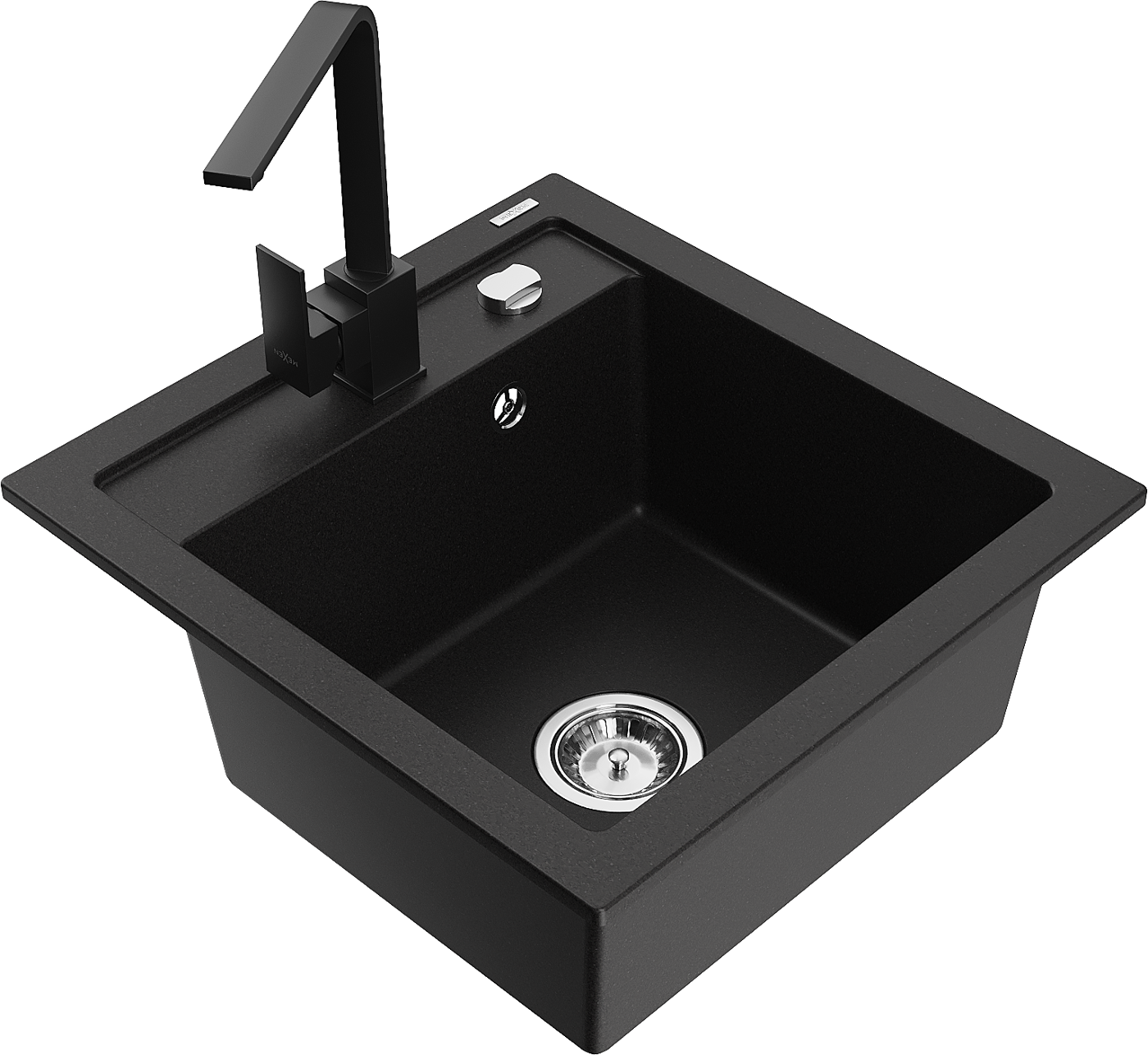 Mexen Vito granitový dřez 1-komorový s kuchyňskou baterií Rita, černý - 6503-77-670300-70