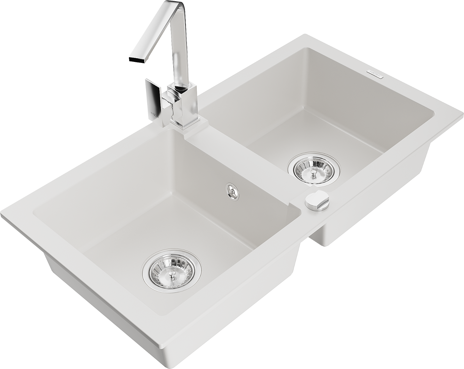 Mexen Mario dvoukomorový granitový dřez s kuchyňskou baterií Rita, bílý - 6504-20-670300-00