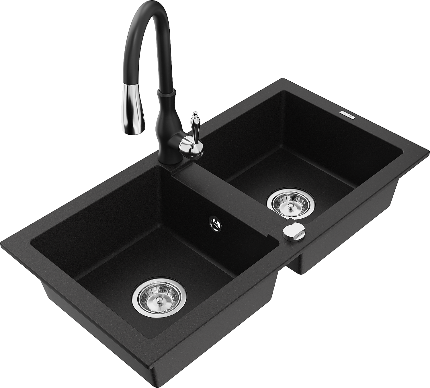 Mexen Mario granitový dřez 2-komorový s kuchyňskou baterií Savita, černý - 6504-77-672601-70