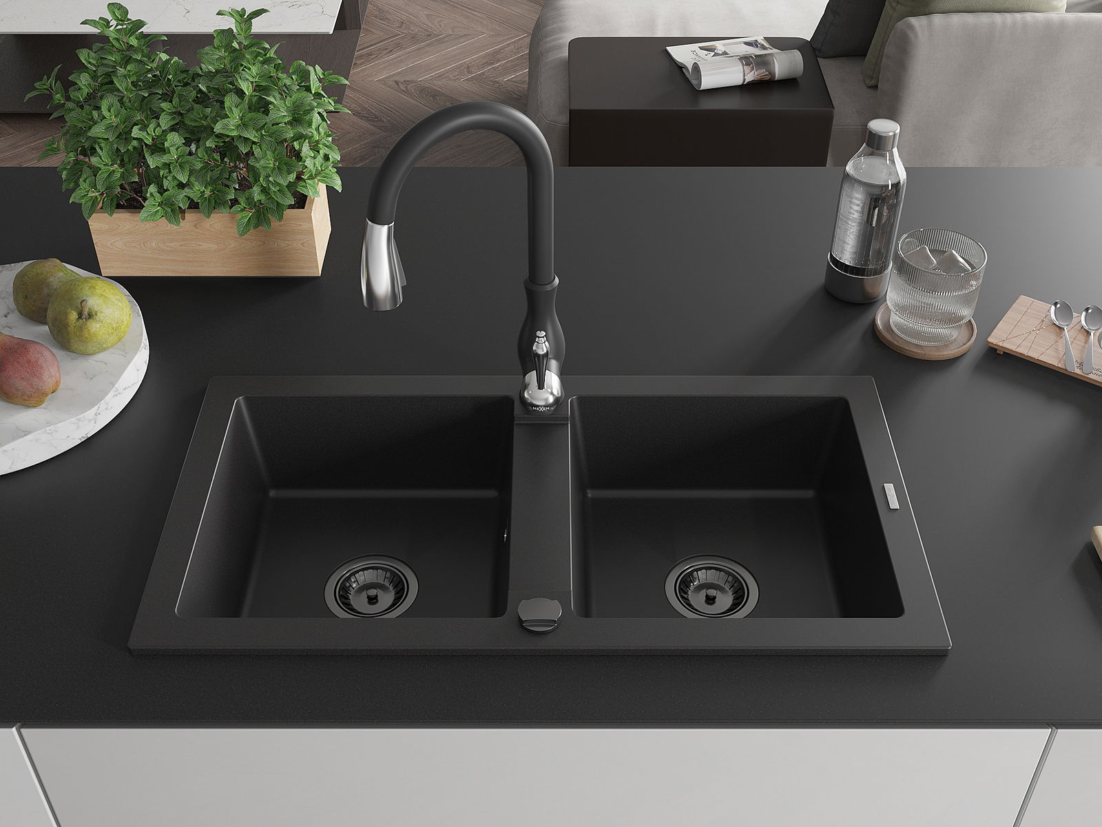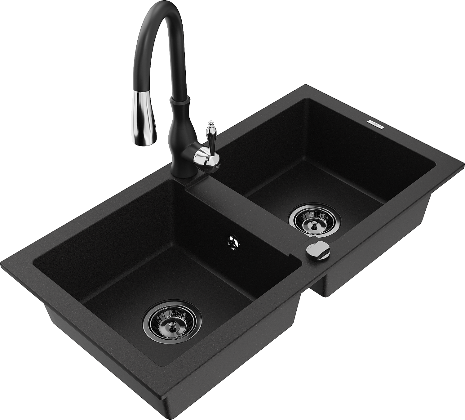 Mexen Mario dřez dvoukomorový s kuchyňskou baterií Savita, černý - 6504-77-672601-70-B