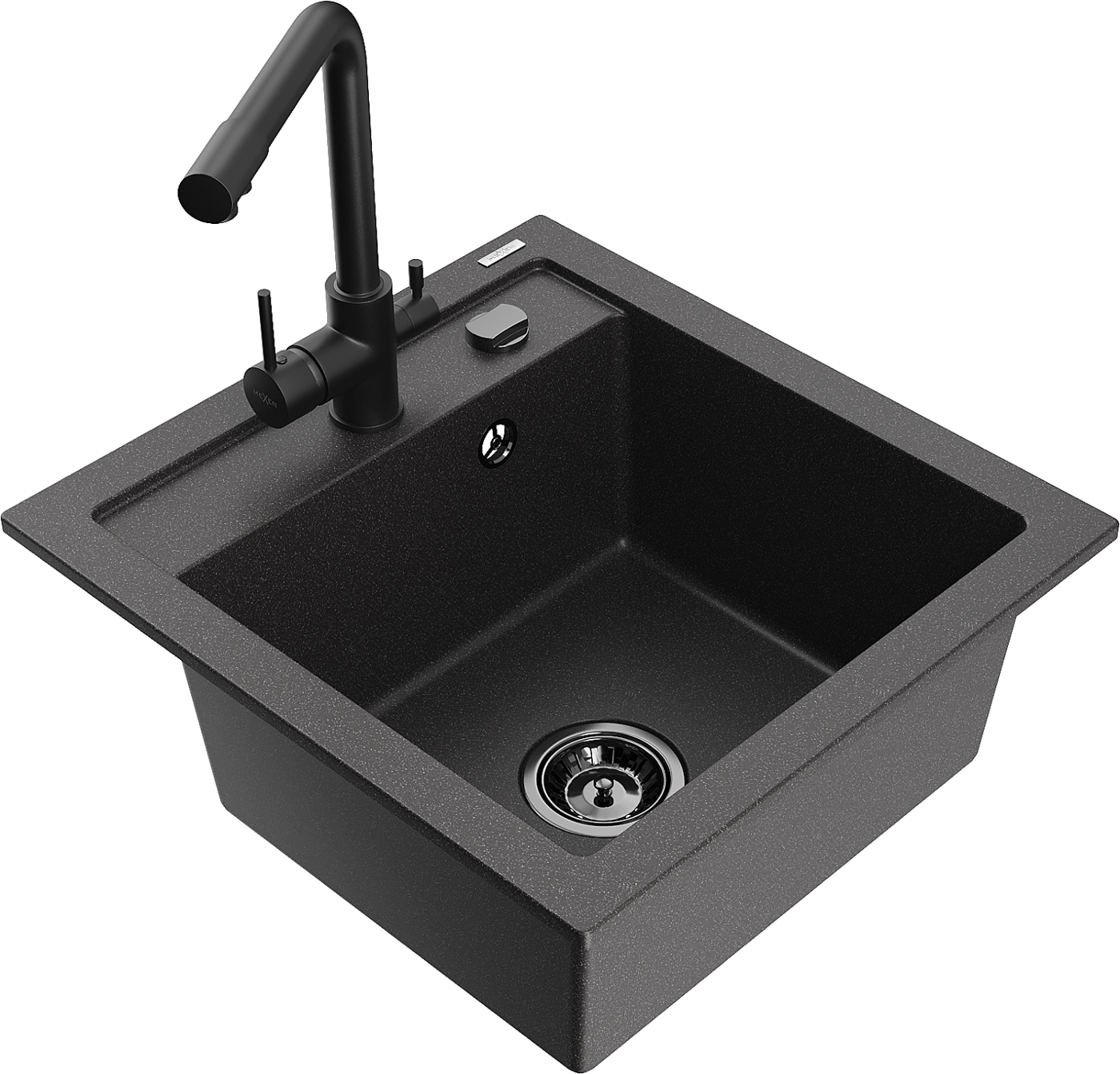 Mexen Vito granitový dřez s 1 komorou a kuchyňskou baterií Duero, černý skvrnitý - 6503-76-671600-70-B