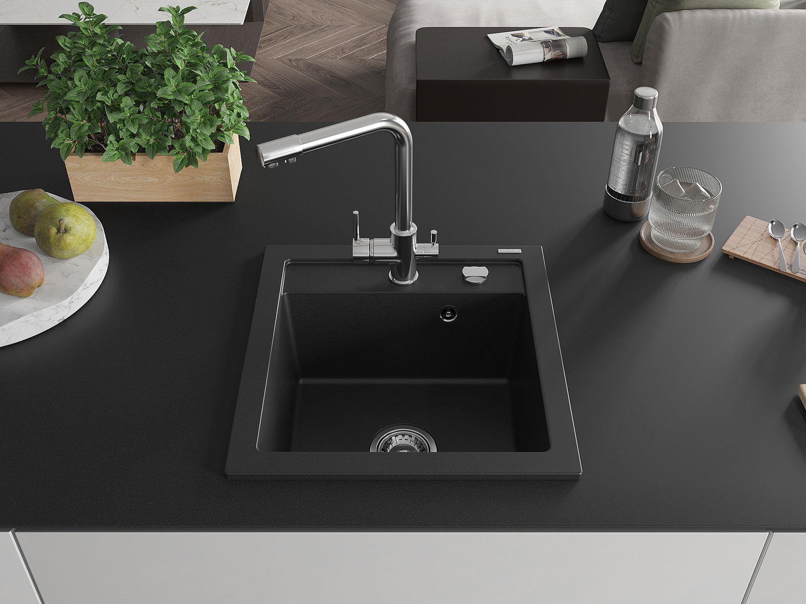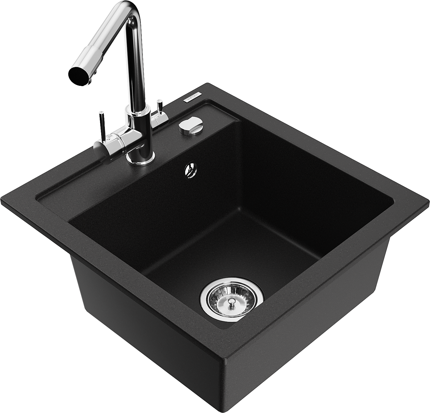 • Mexen Vito granitový dřez 1-komorový s kuchyňskou baterií Duero, černý - 6503-77-671600-00