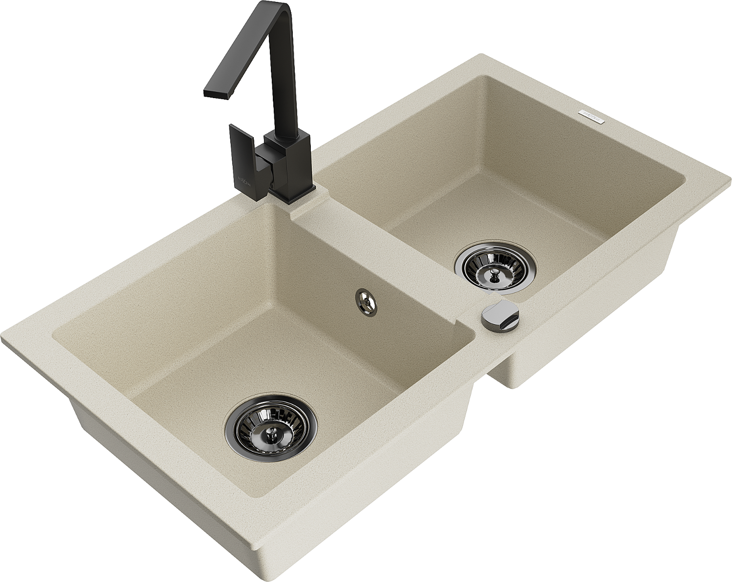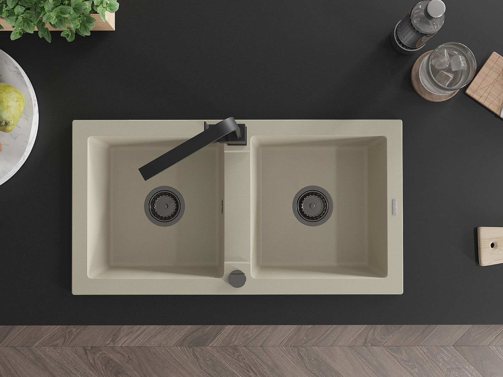 Mexen Mario dvoukomorový žulový dřez s kuchyňskou baterií Rita, béžový - 6504-69-670300-70