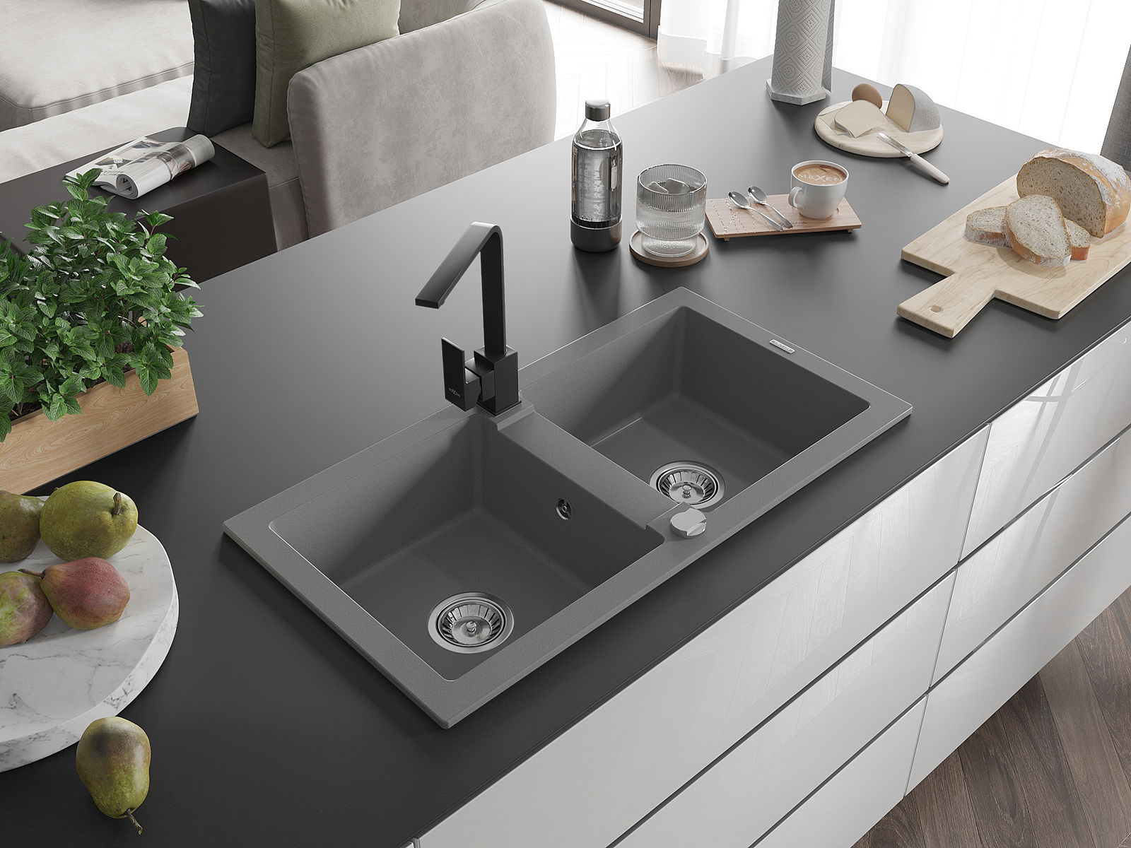 Dřez byl vyroben z vysoce kvalitního granitu. Představuje elegantní a především praktický doplněk každé kuchyně, bez ohledu na její styl. Vysoká kvalita a trvanlivost granitu zajišťují dlouholeté používání.