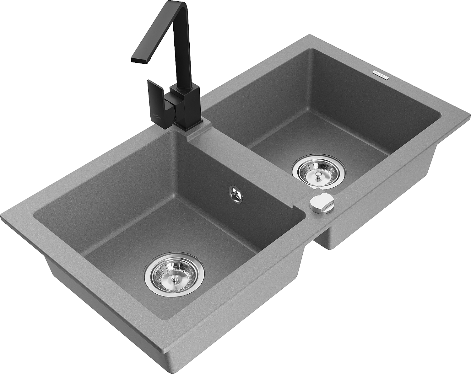 Mexen Mario granitový dřez 2-komorový s kuchyňskou baterií Rita, šedý - 6504-71-670300-70