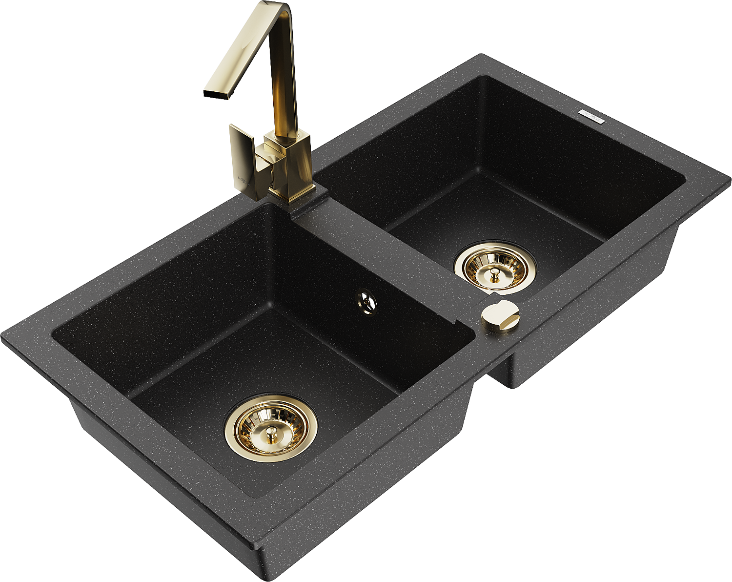 Mexen Mario dřez žulový 2-komorový s kuchyňskou baterií Rita, černý/stříbrný metalík - 6504-73-670300-50