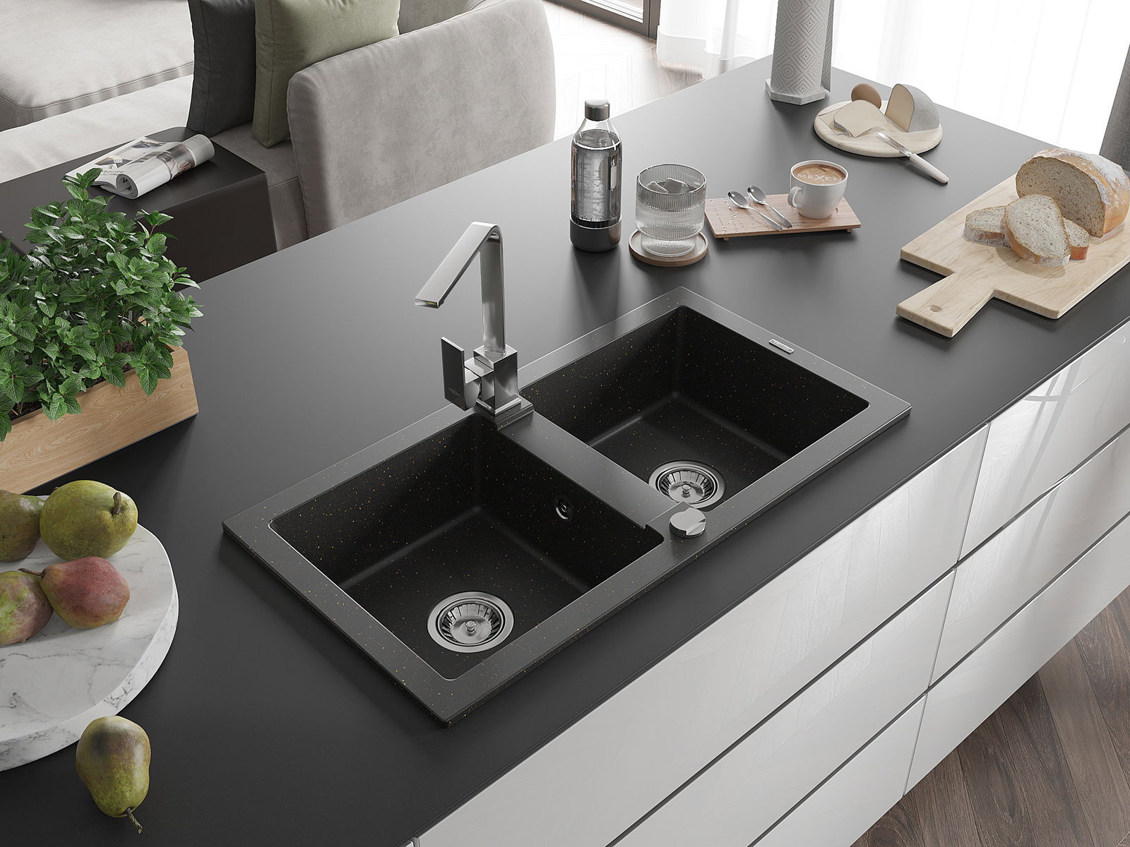 Dřez byl vyroben z vysoce kvalitního granitu. Představuje elegantní a především praktický doplněk každé kuchyně, bez ohledu na její styl. Vysoká kvalita a trvanlivost granitu zajišťují dlouholeté používání.