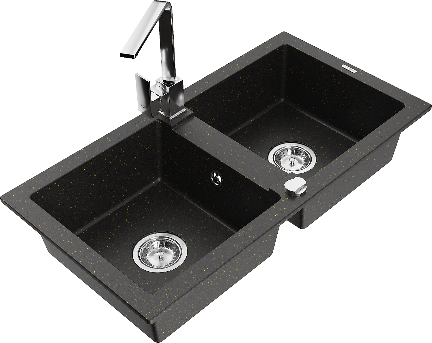 Mexen Mario dřez granitový 2-komorový s kuchyňskou baterií Rita, černý/zlatý metalik - 6504-75-670300-00