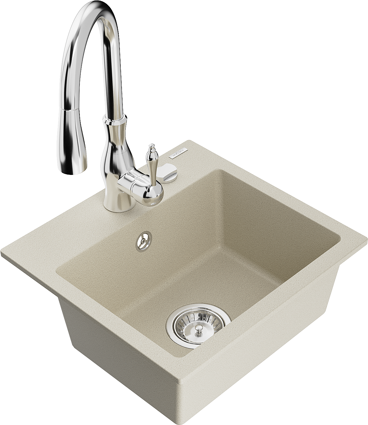 Mexen Milo granitový dřez 1-komorový s kuchyňskou baterií Savita, béžový - 6505-69-672601-00