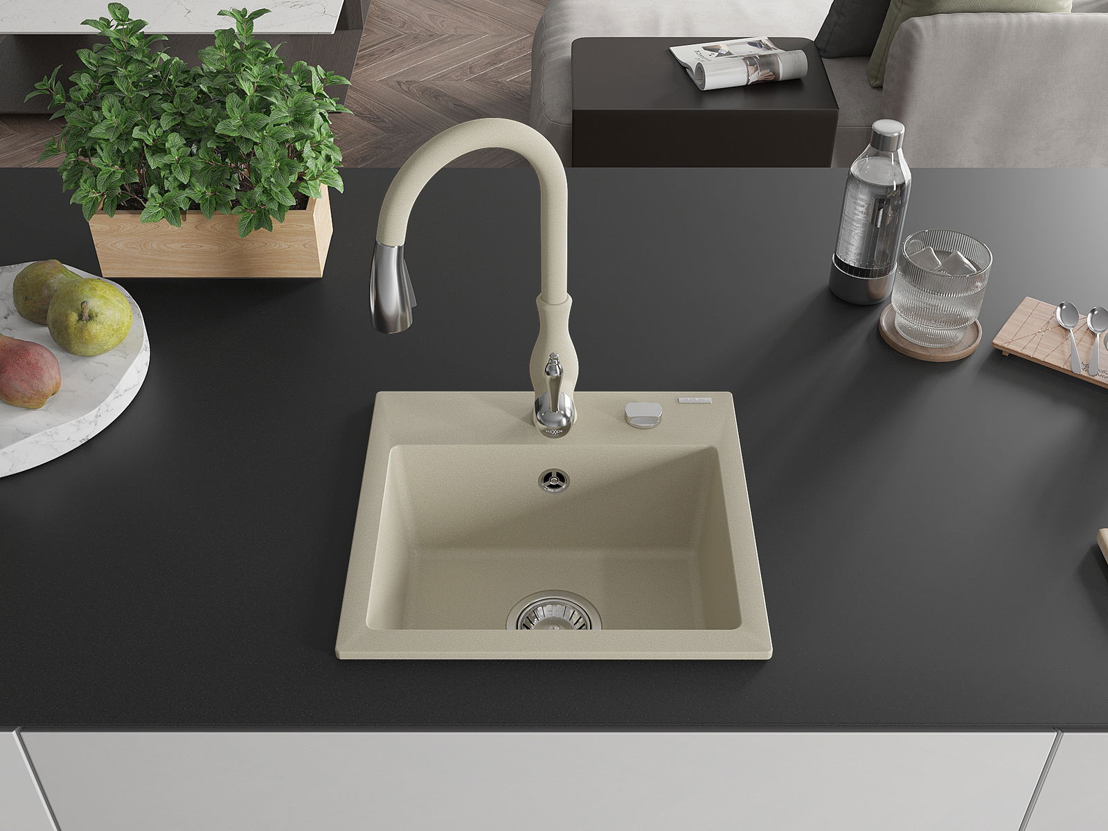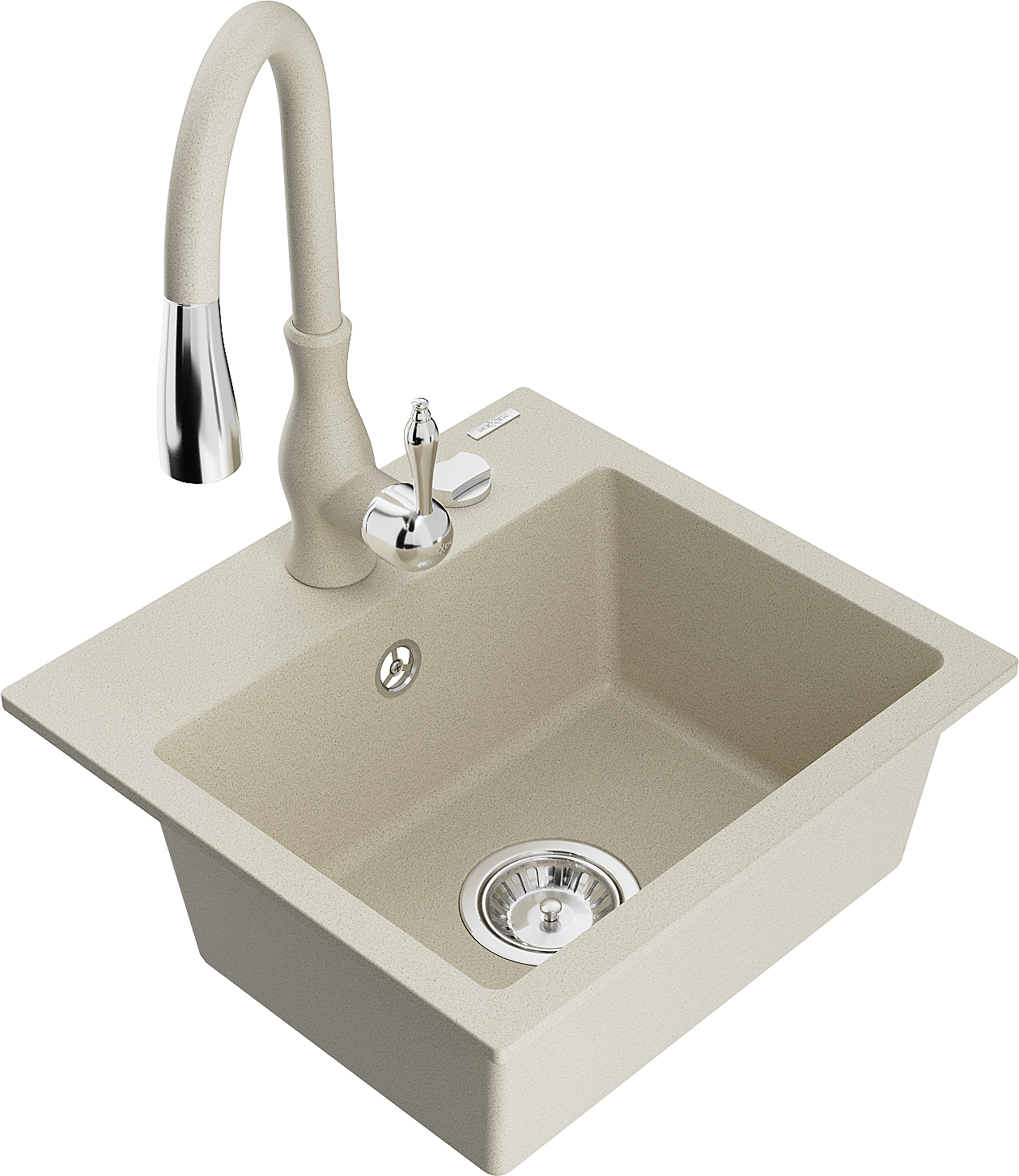 Mexen Milo granitový dřez 1-komorový s kuchyňskou baterií Savita, béžový - 6505-69-672601-69