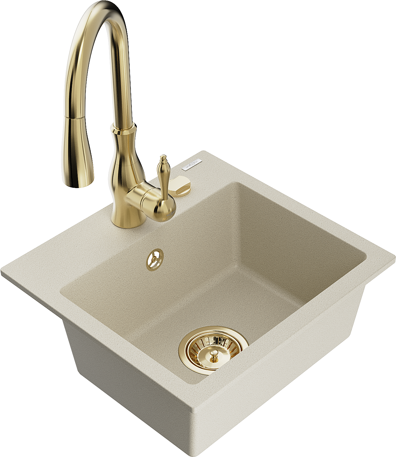 Mexen Milo granitový dřez 1-komorový s kuchyňskou baterií Savita, béžový - 6505-69-672601-50