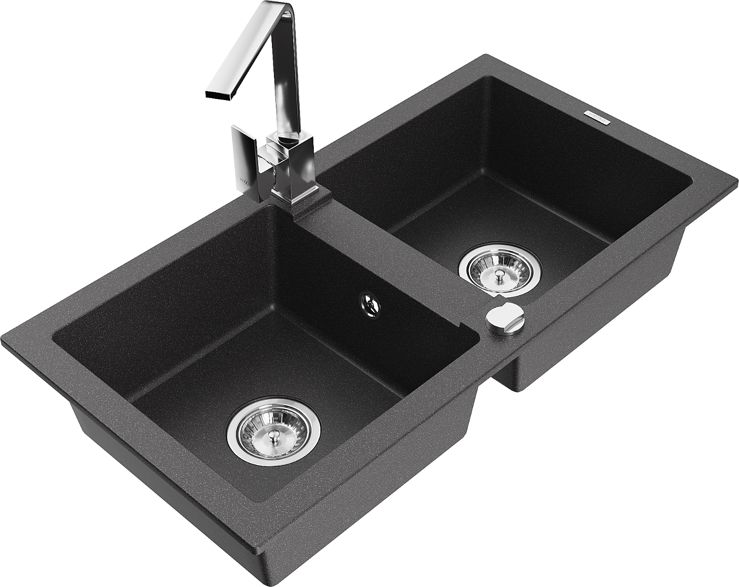 Mexen Mario žulový dřez 2-komorový s kuchyňskou baterií Rita, černý skvrnitý - 6504-76-670300-00