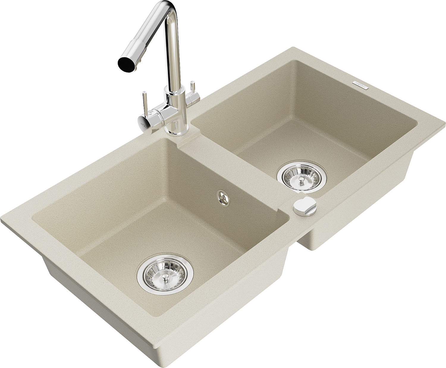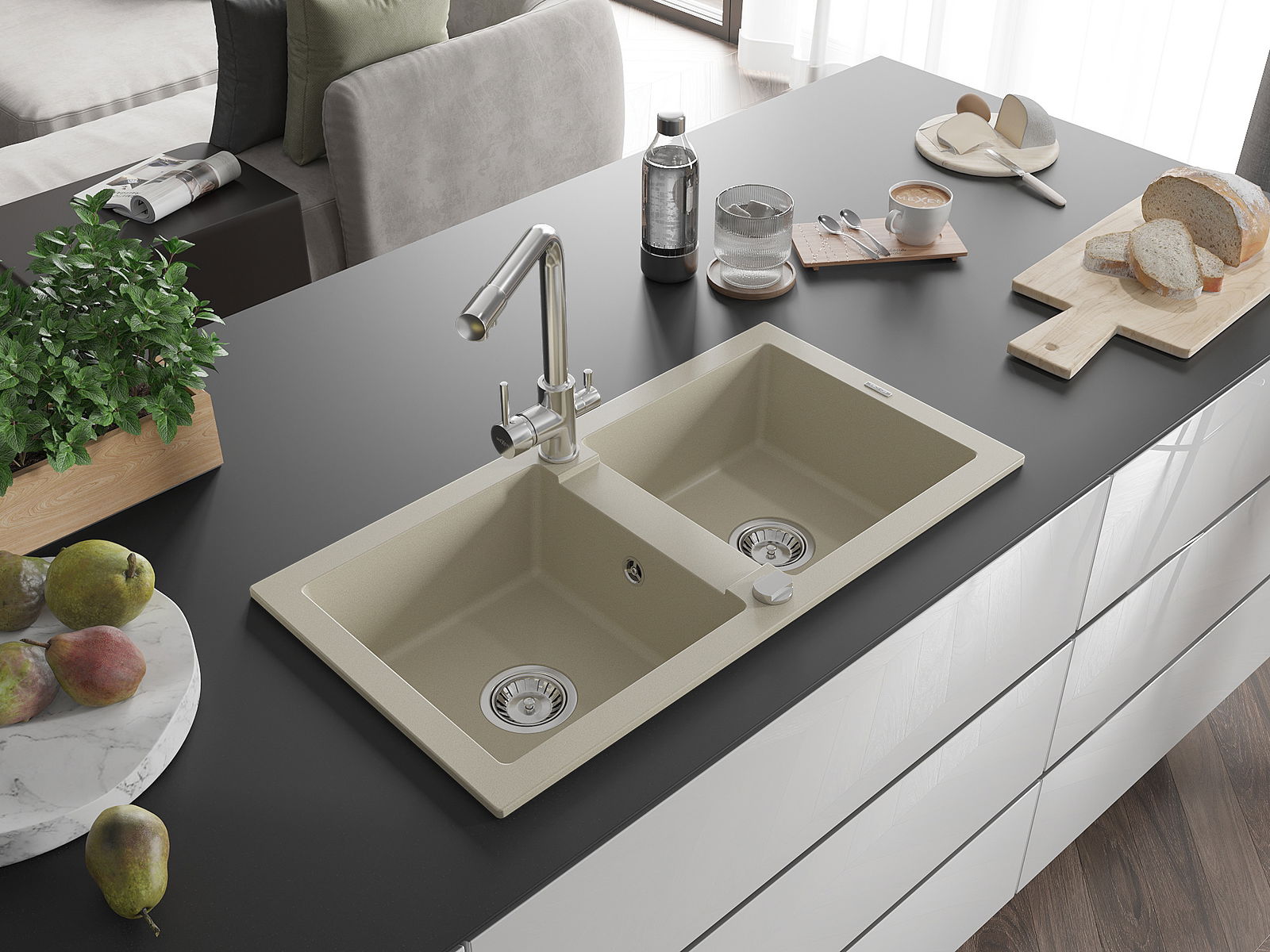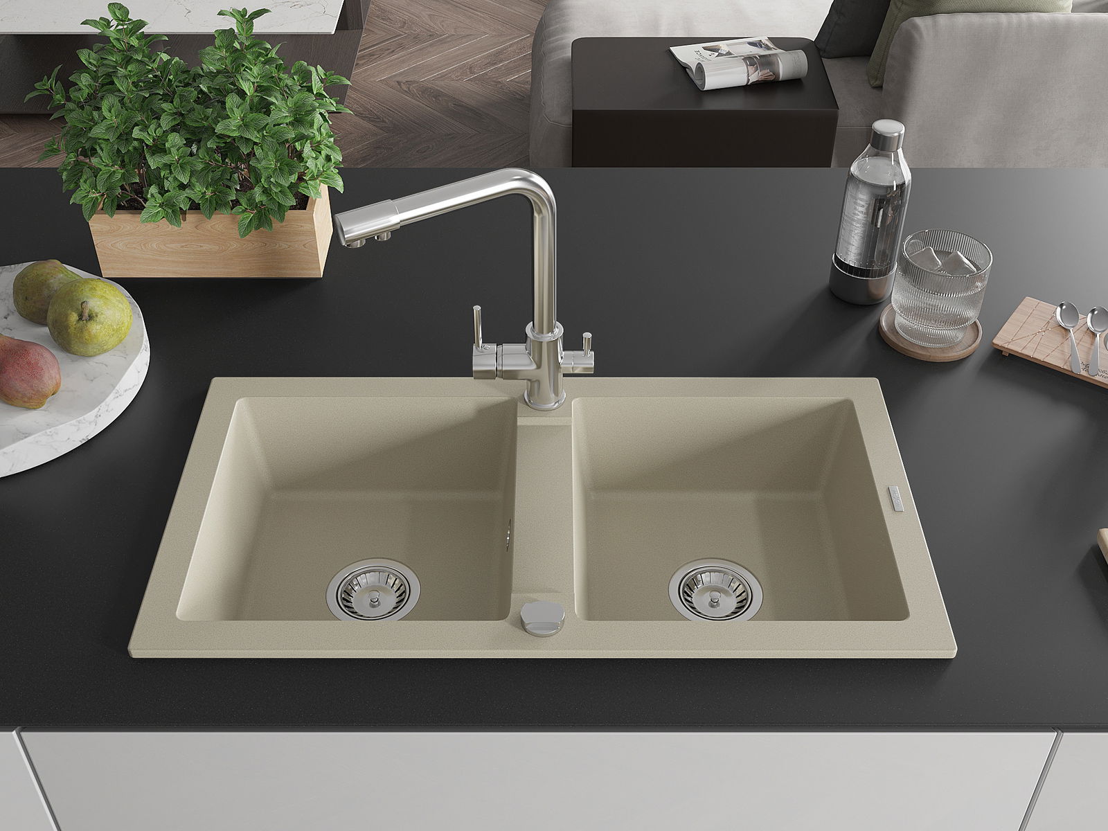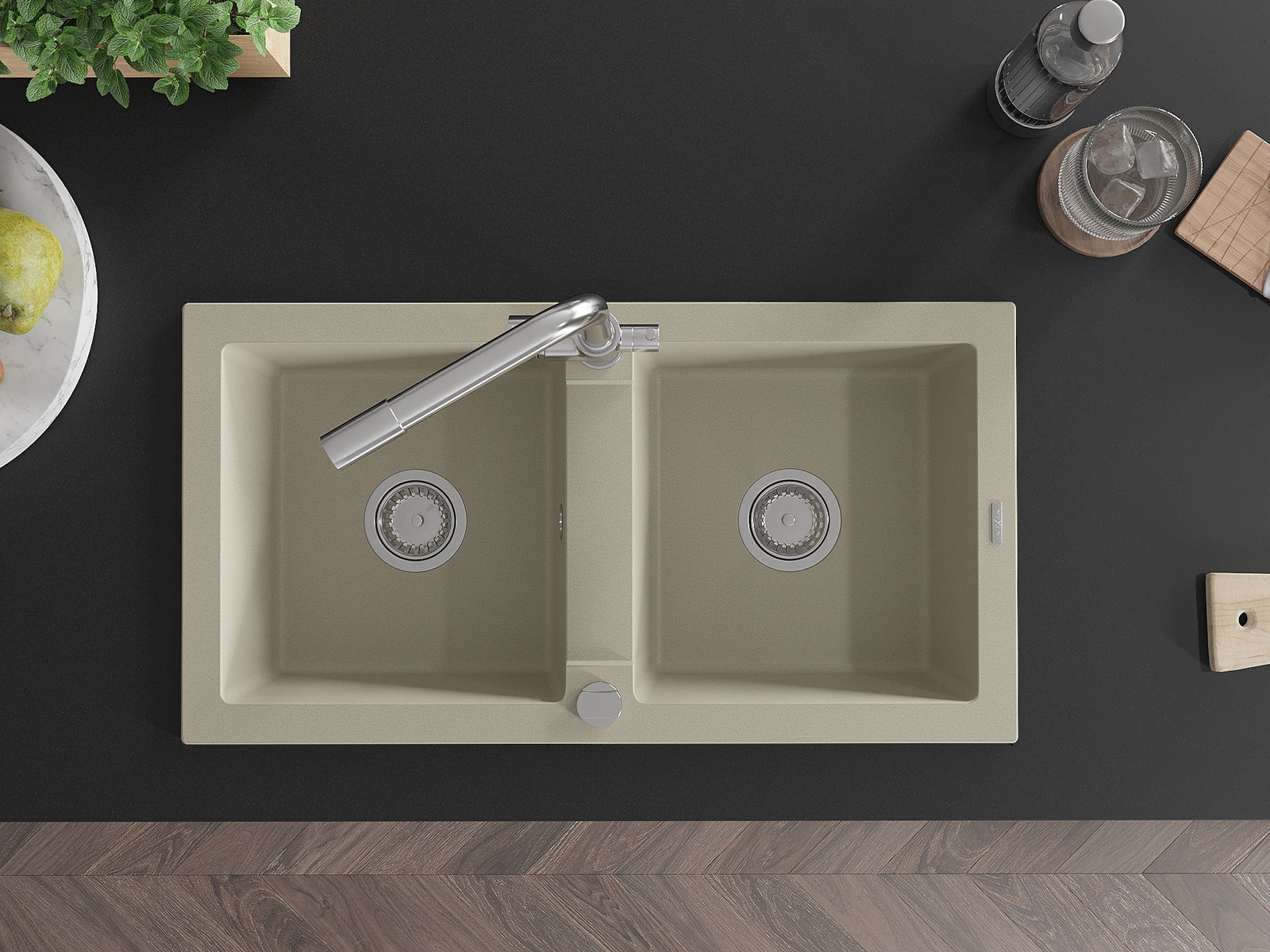 Mexen Mario dřez žulový 2-komorový s kuchyňskou baterií Duero, béžový - 6504-69-671600-00