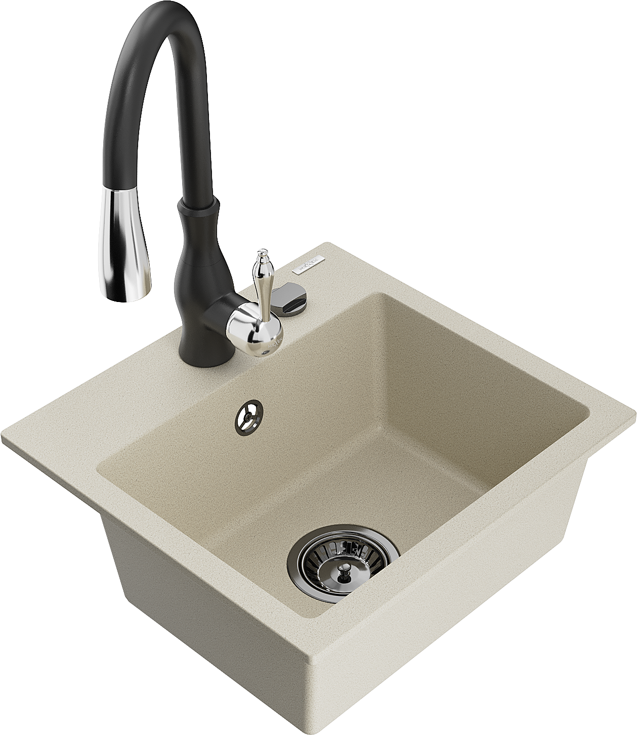 Mexen Milo granitový dřez 1-komorový s kuchyňskou baterií Savita, béžový - 6505-69-672601-70