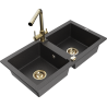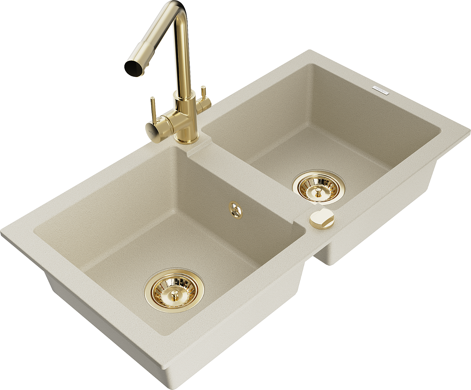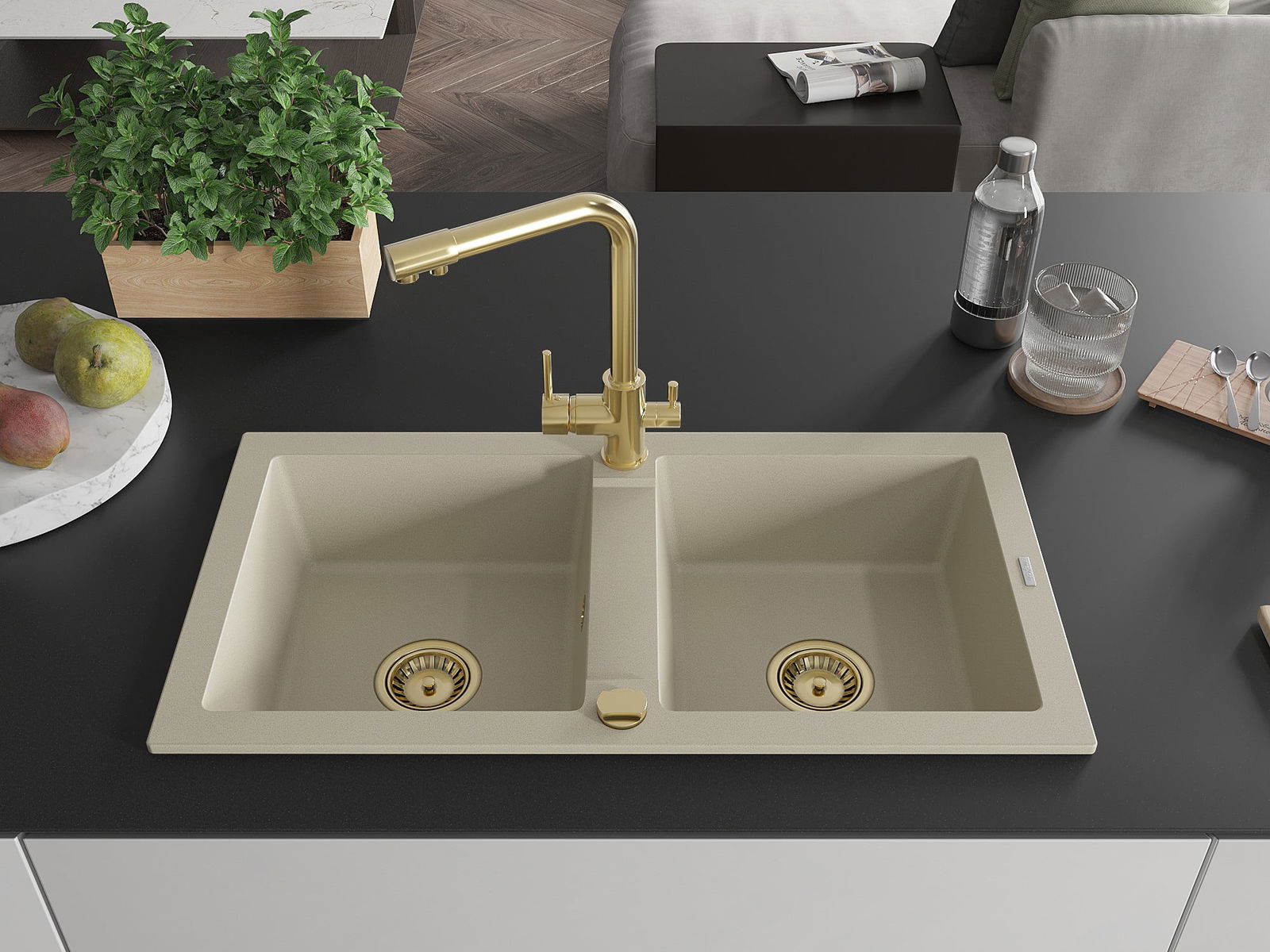 Mexen Mario žulový dřez 2-komorový s kuchyňskou baterií Duero, béžový - 6504-69-671600-50