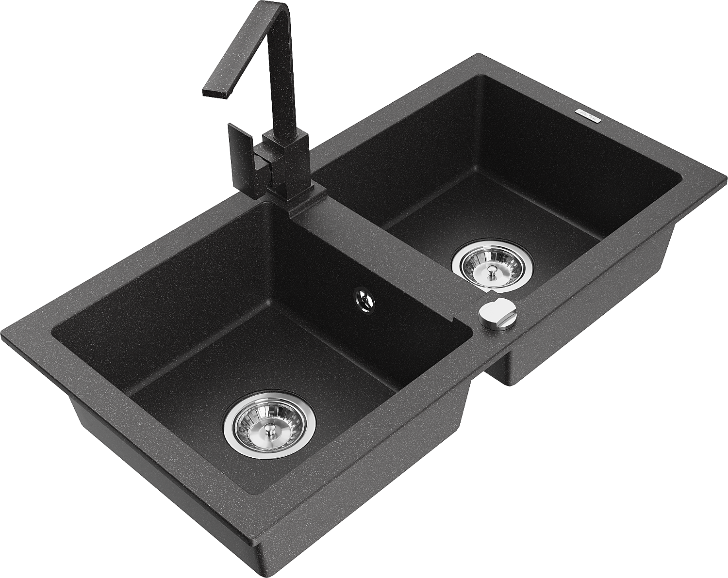 Mexen Mario žulový dřez 2-komorový s kuchyňskou baterií Rita, černý tečkovaný - 6504-76-670300-76