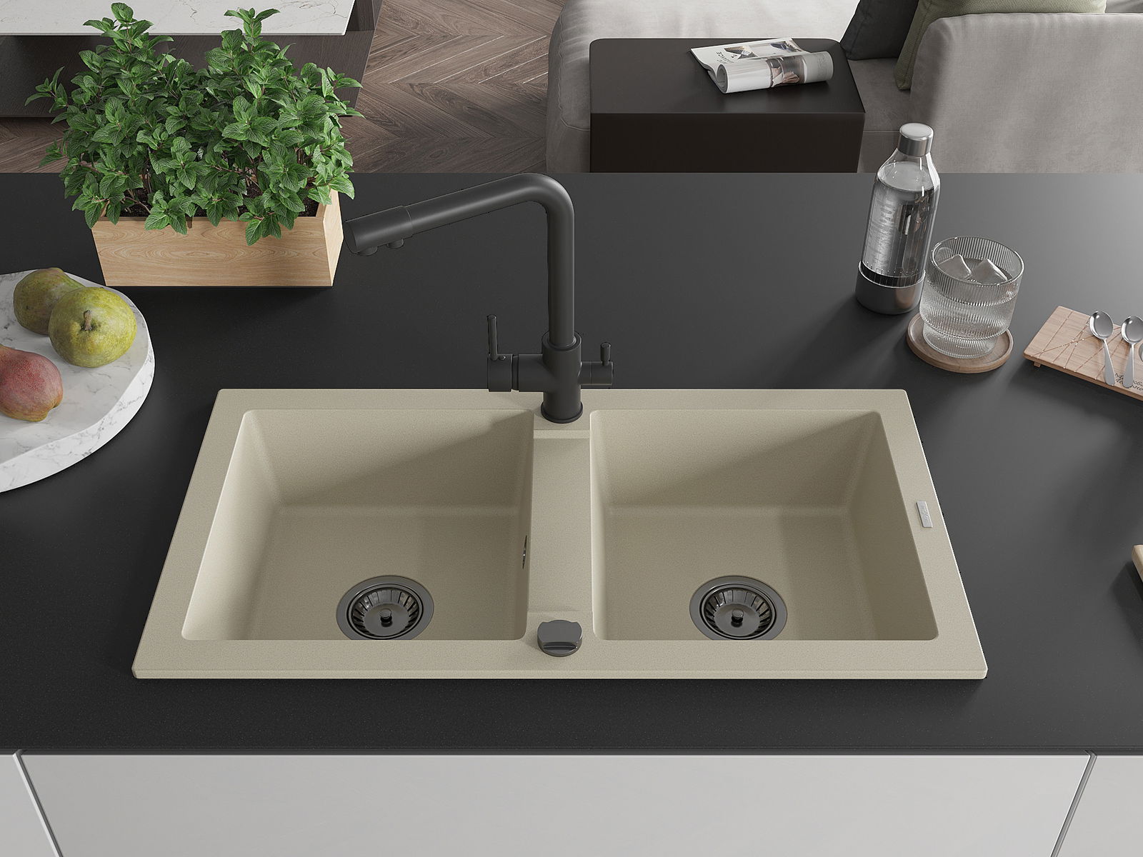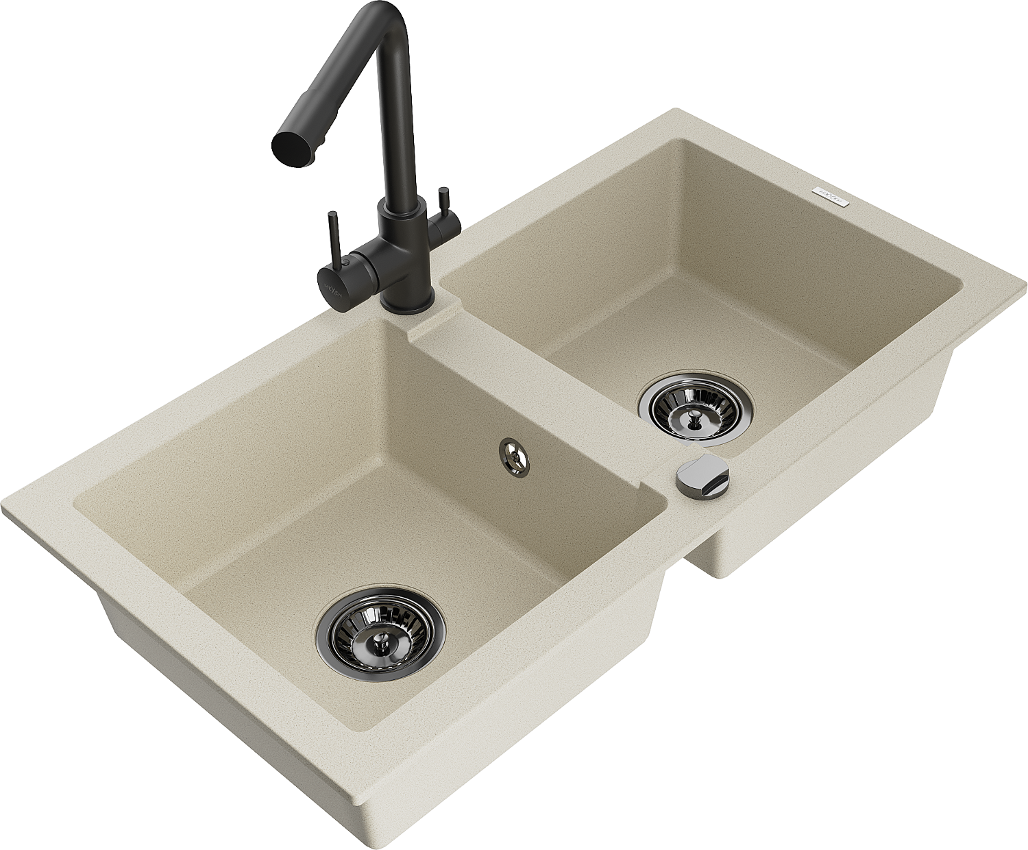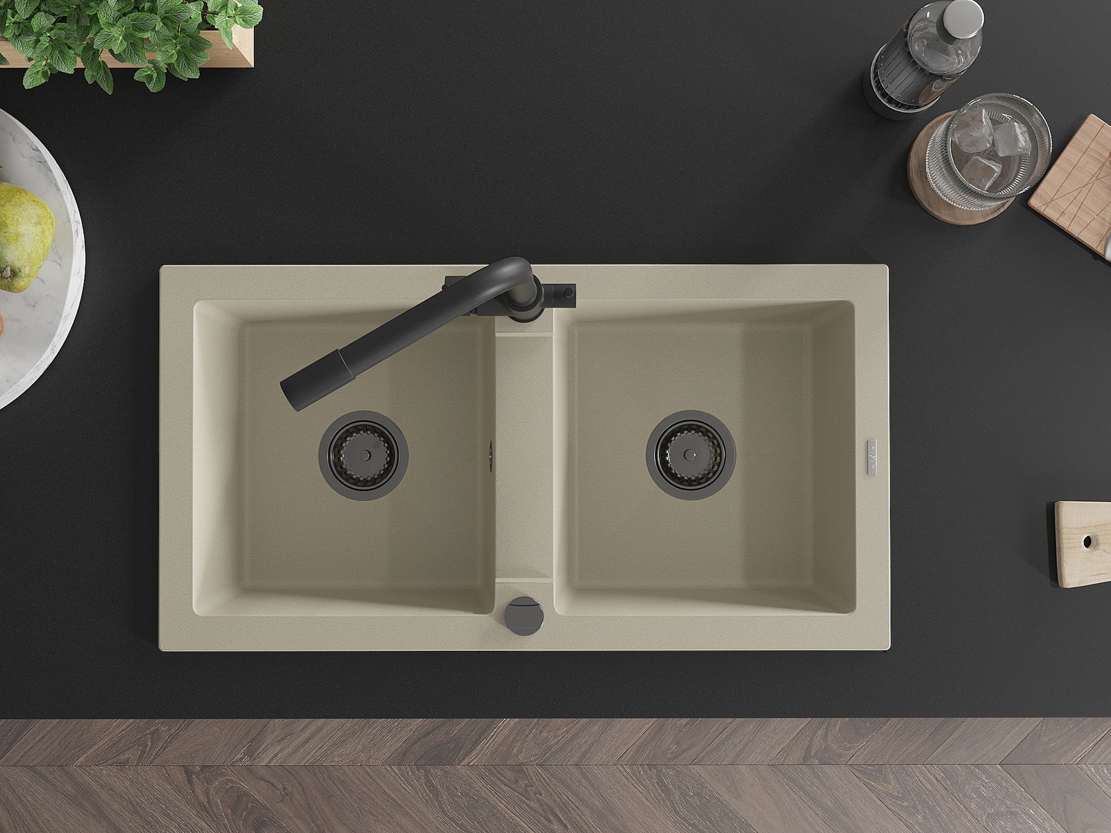 Mexen Mario granitový dřez 2-komorový s kuchyňskou baterií Duero, béžový - 6504-69-671600-70