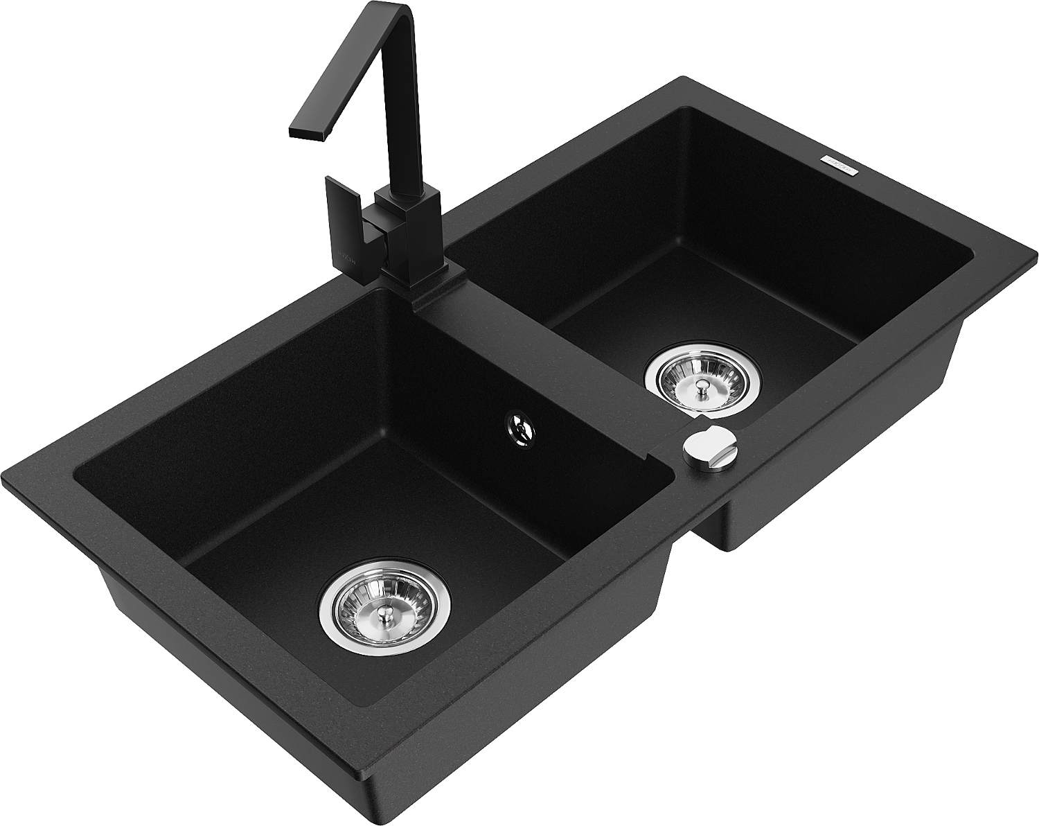 Mexen Mario granitový dřez 2-komorový s kuchyňskou baterií Rita, černý - 6504-77-670300-70