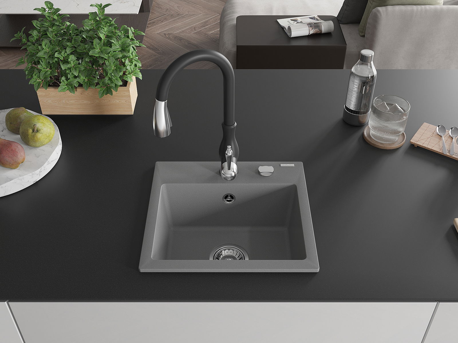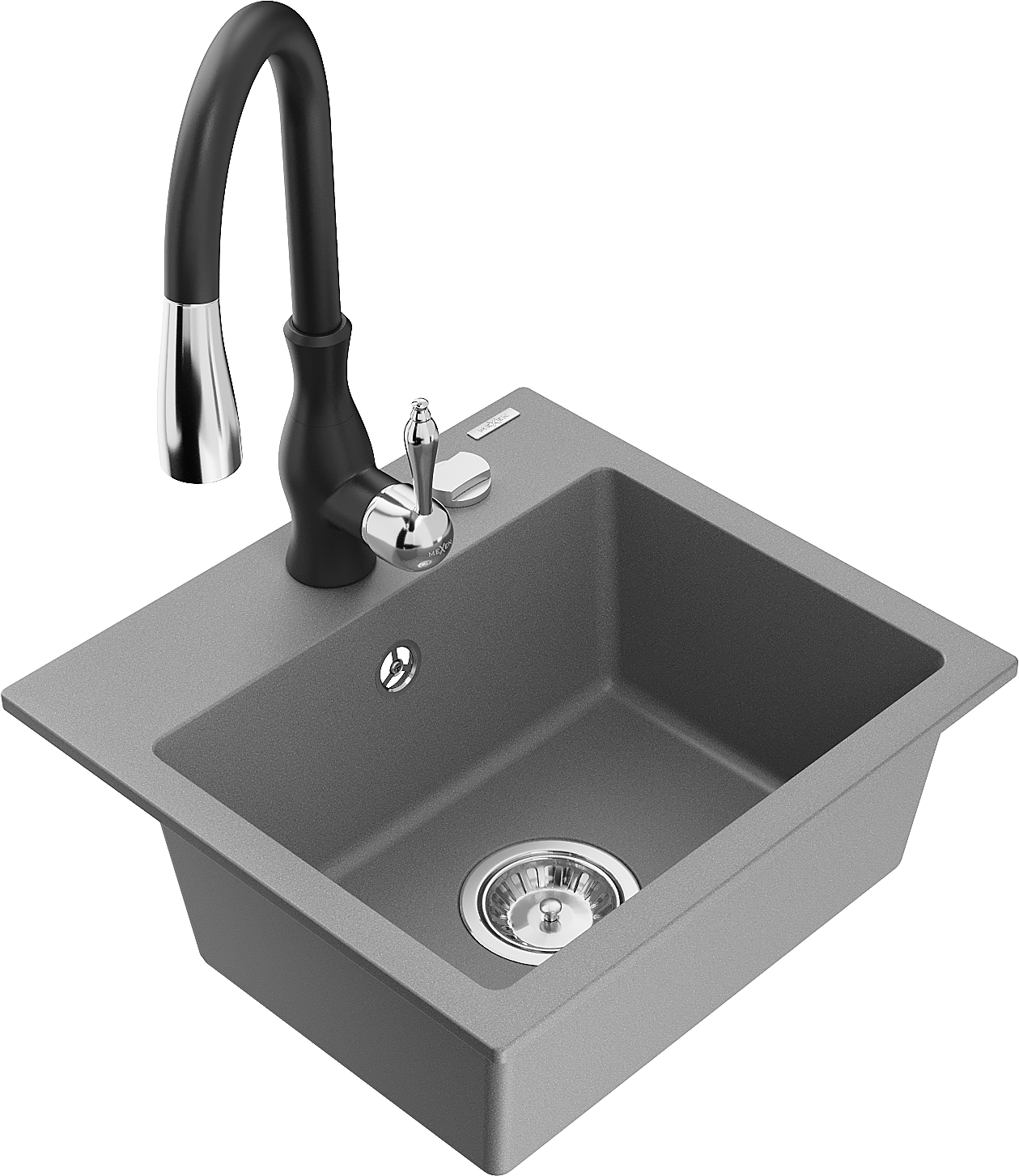 Mexen Milo granitový dřez 1-komorový s kuchyňskou baterií Savita, šedý - 6505-71-672601-70