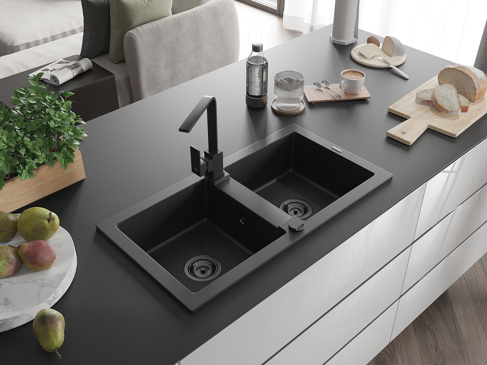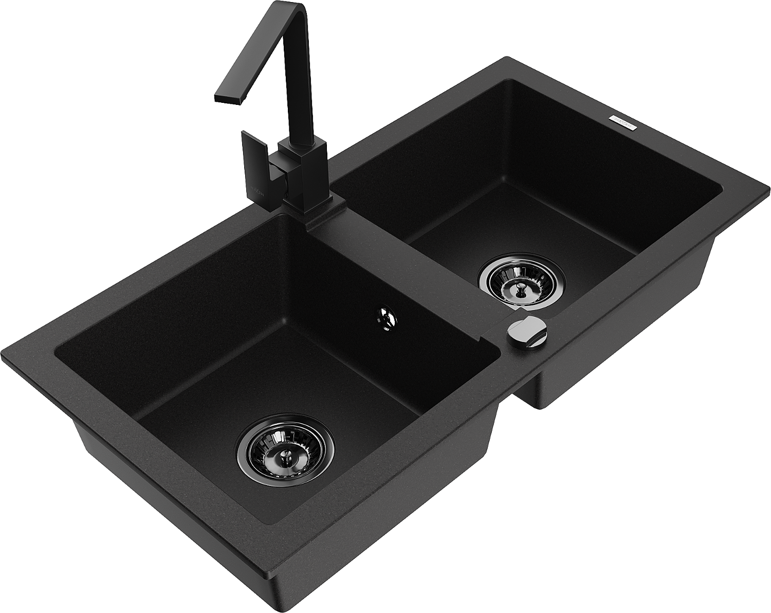 Mexen Mario granitový dřez 2komorový s kuchyňskou baterií Rita, černý - 6504-77-670300-70-B