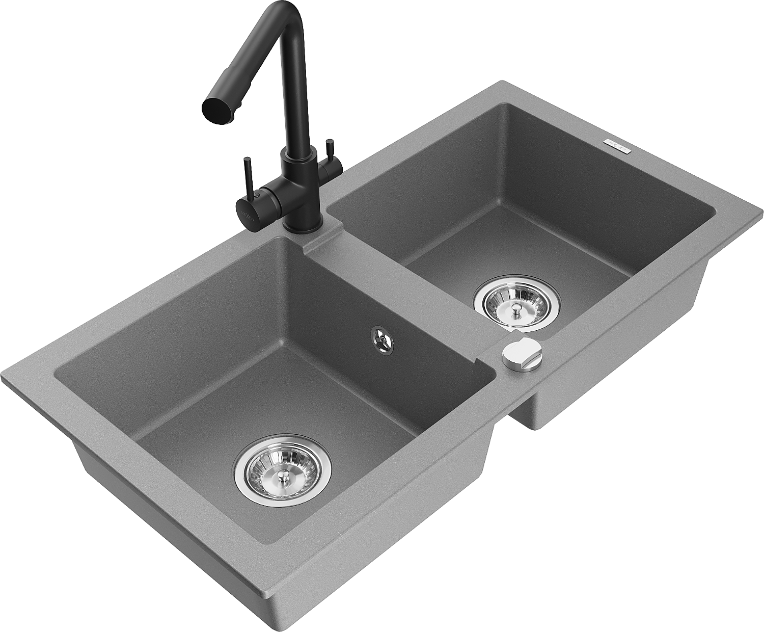 Mexen Mario granitový dřez 2-komorový s kuchyňskou baterií Duero, šedý - 6504-71-671600-70