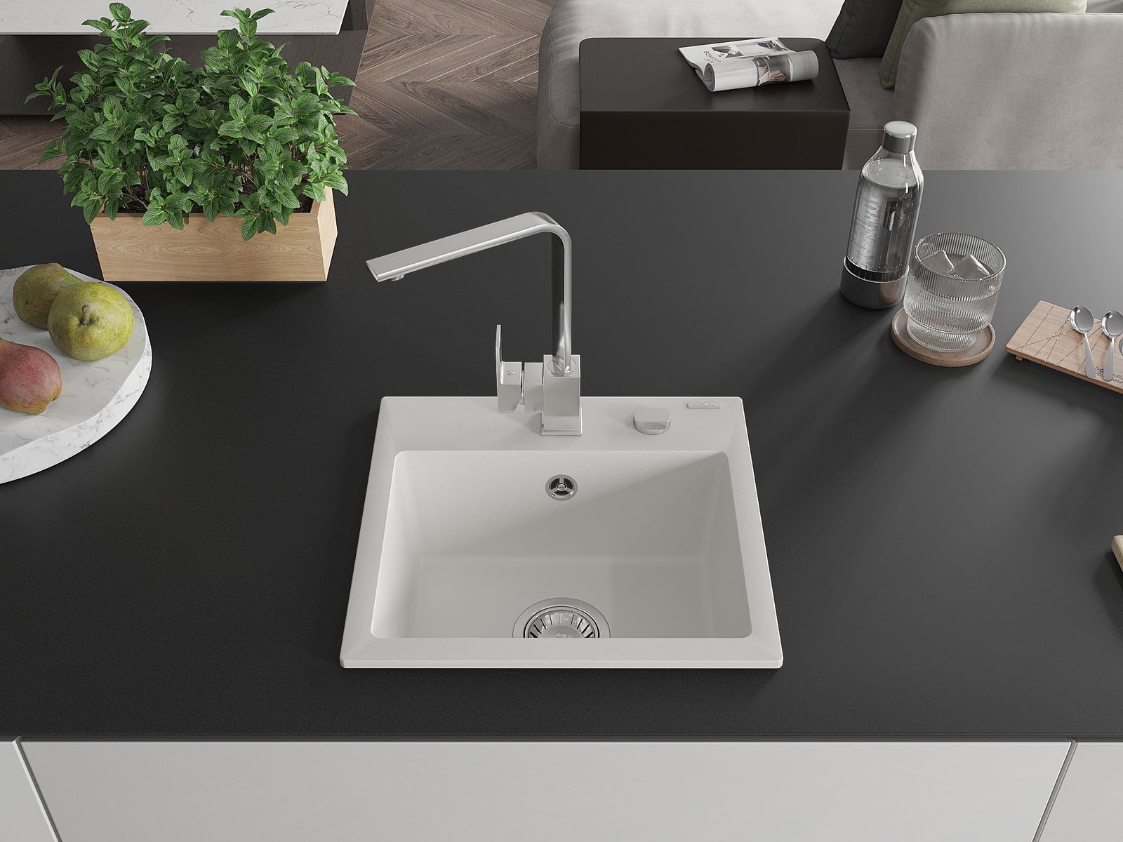 Povrch dřezu je odolný proti skvrnám a zabarvení, což usnadňuje jeho čištění a zachovává jeho barvu po dlouhou dobu používání. Estetický a praktický doplněk každé kuchyně.