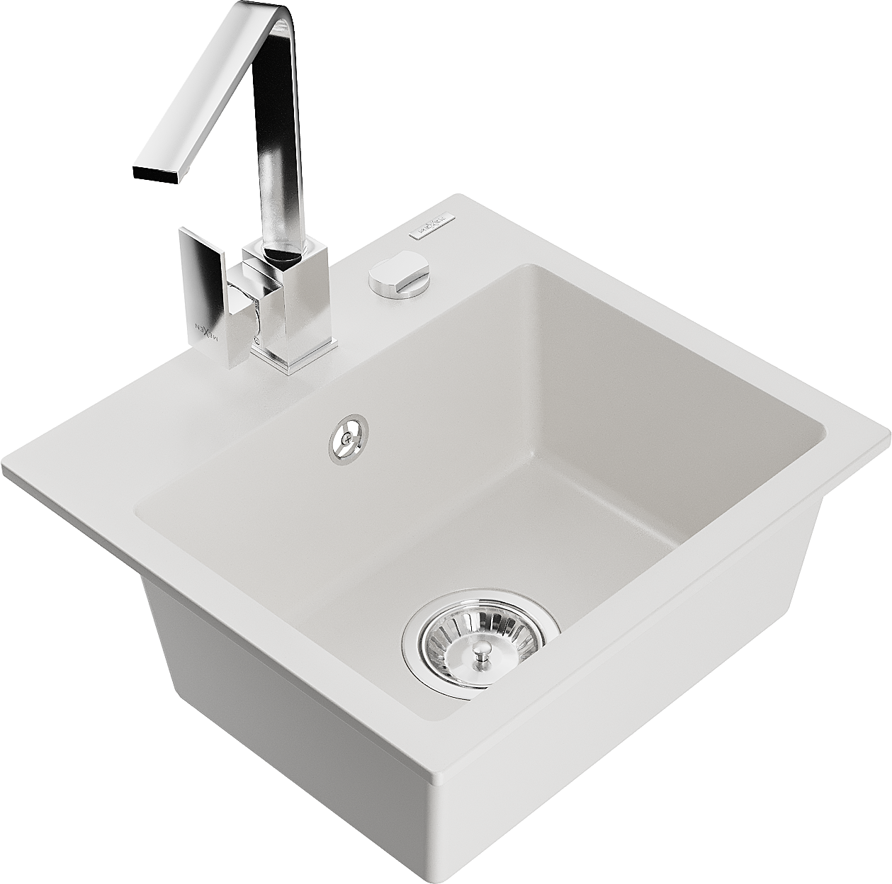 Mexen Milo granitový dřez s 1 komorou a kuchyňskou baterií Rita, bílý - 6505-20-670300-00