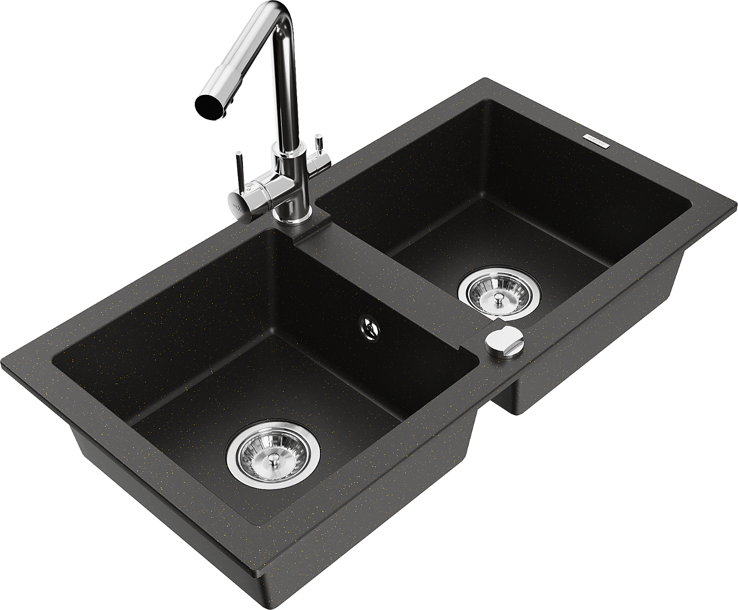 Mexen Mario žulový dřez 2-komorový s kuchyňskou baterií Duero, černý/zlatý metalík - 6504-75-671600-00