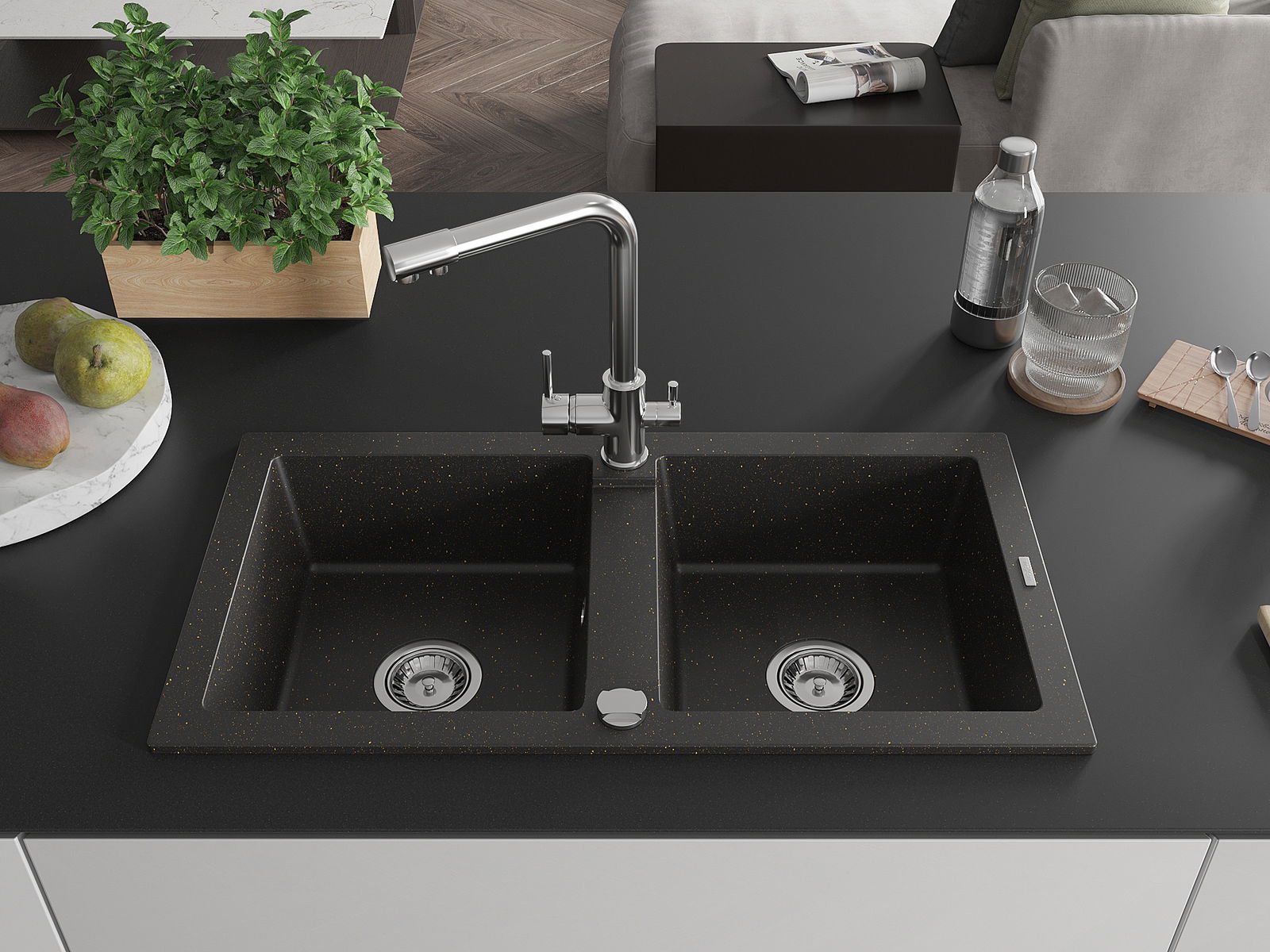 Dvouhlavicová baterie s dodatečným filtrem na pitnou vodu