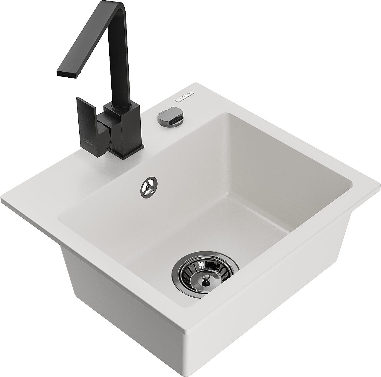 Mexen Milo granitový dřez 1-komorový s kuchyňskou baterií Rita, bílý - 6505-20-670300-70