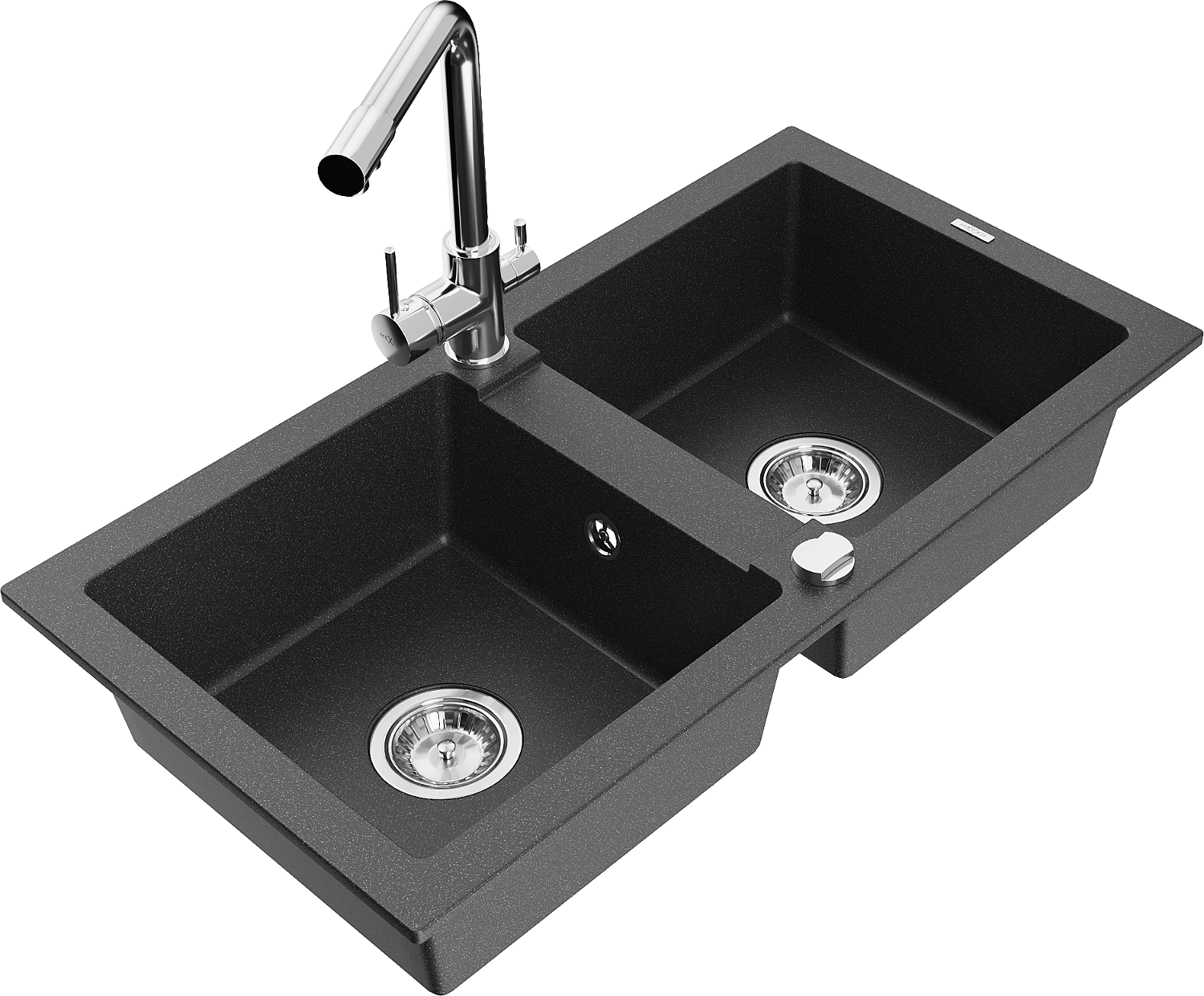 Mexen Mario granitový dřez dvoukomorový s kuchyňskou baterií Duero, černý skvrnitý - 6504-76-671600-00