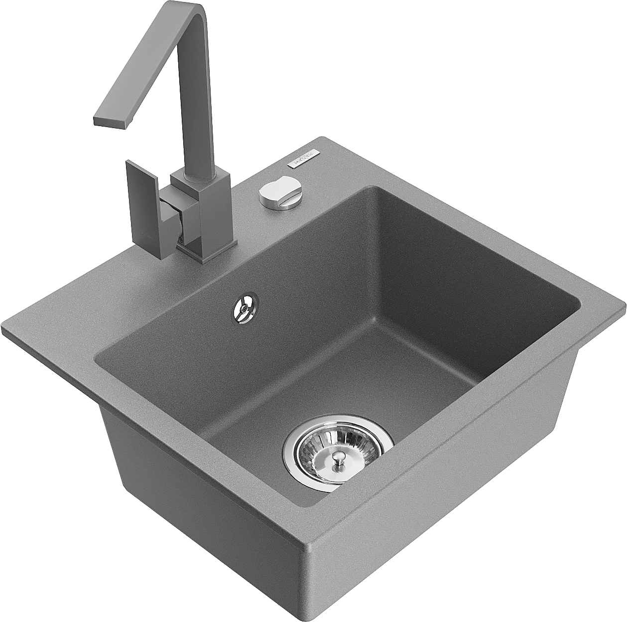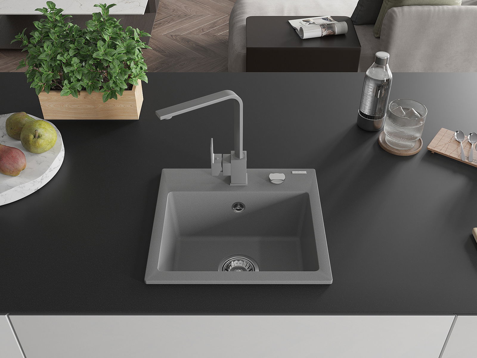 Mexen Milo granitový dřez 1-komorový s kuchyňskou baterií Rita, šedý - 6505-71-670300-71