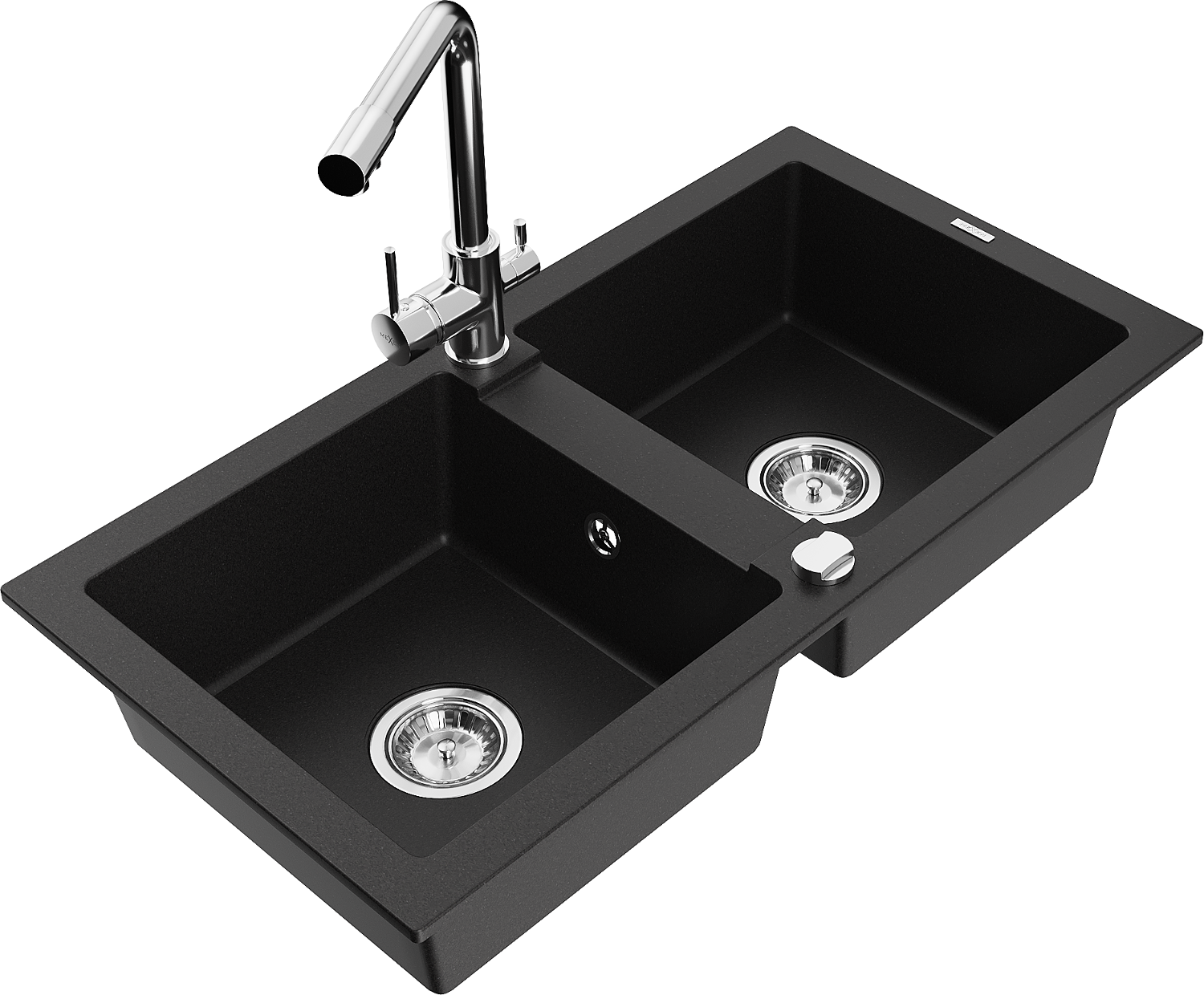 Mexen Mario žulový dřez dvoukomorový s kuchyňskou baterií Duero, černý - 6504-77-671600-00