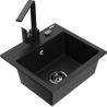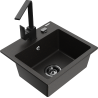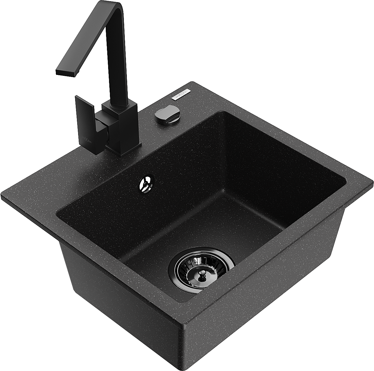 Mexen Milo granitový dřez 1-komorový s kuchyňskou baterií Rita, černý/stříbrný metalik - 6505-73-670300-70-B