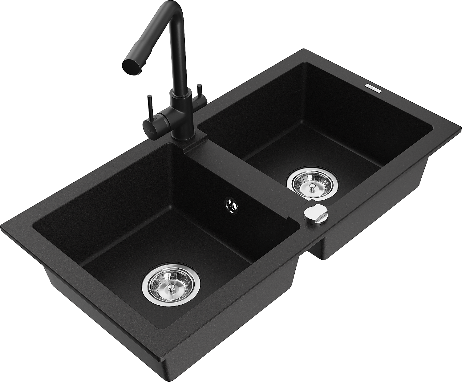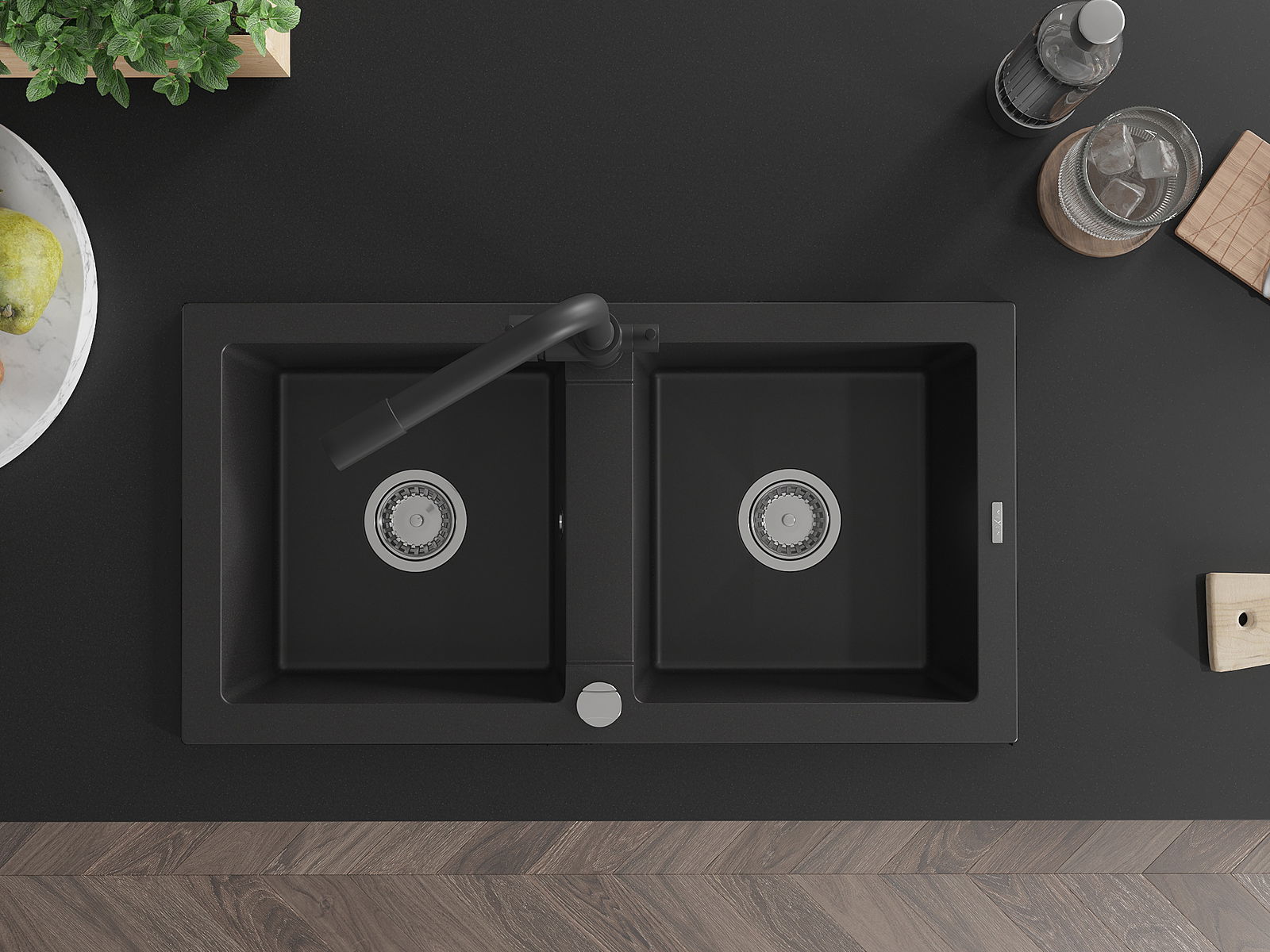 Mexen Mario granitový dřez s 2 komorami a kuchyňská baterie Duero, černá - 6504-77-671600-70