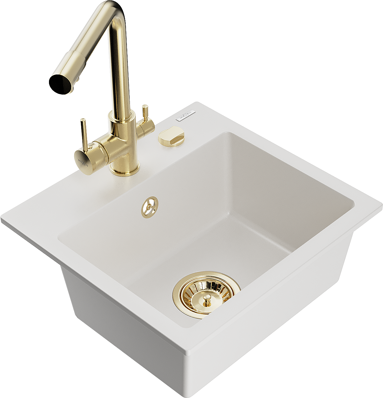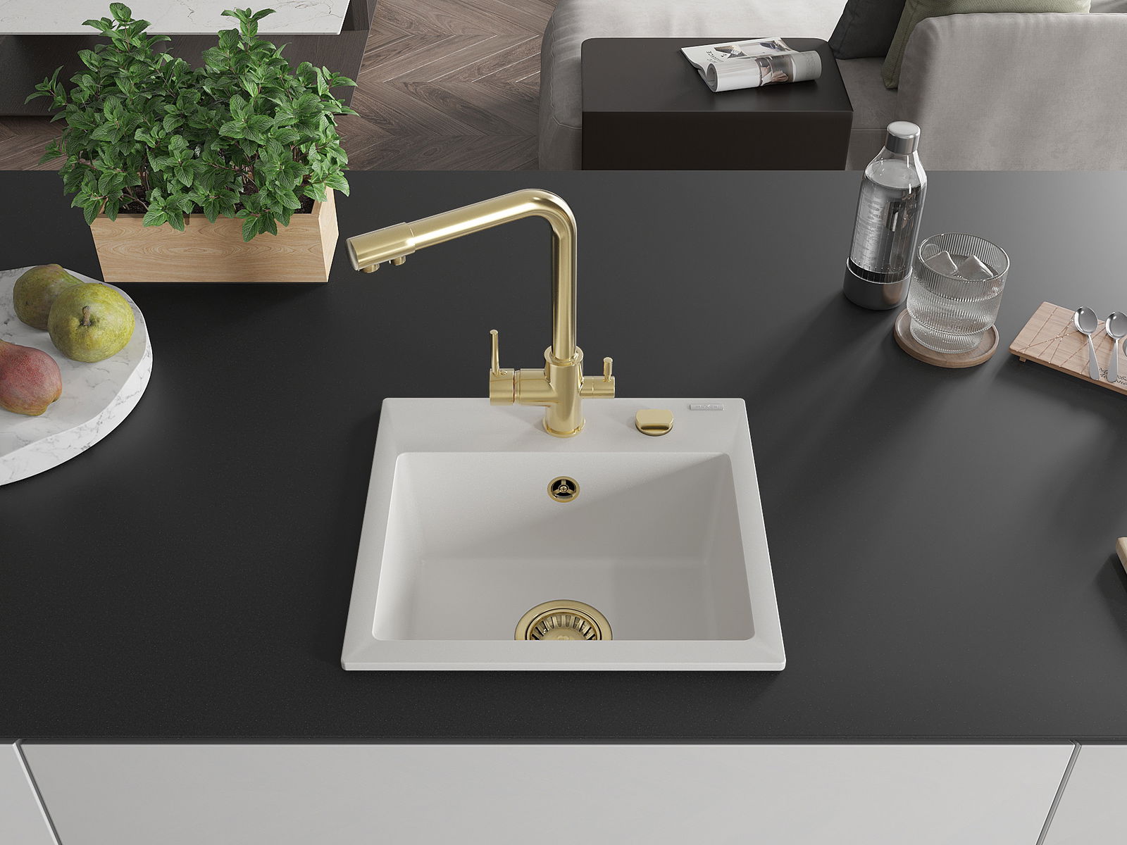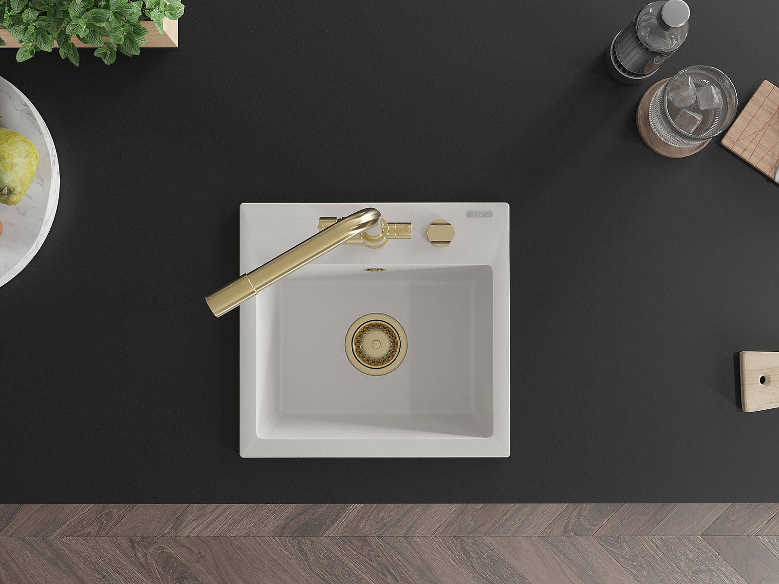 Mexen Milo granitový dřez 1-komorový s kuchyňskou baterií Duero, bílý - 6505-20-671600-50