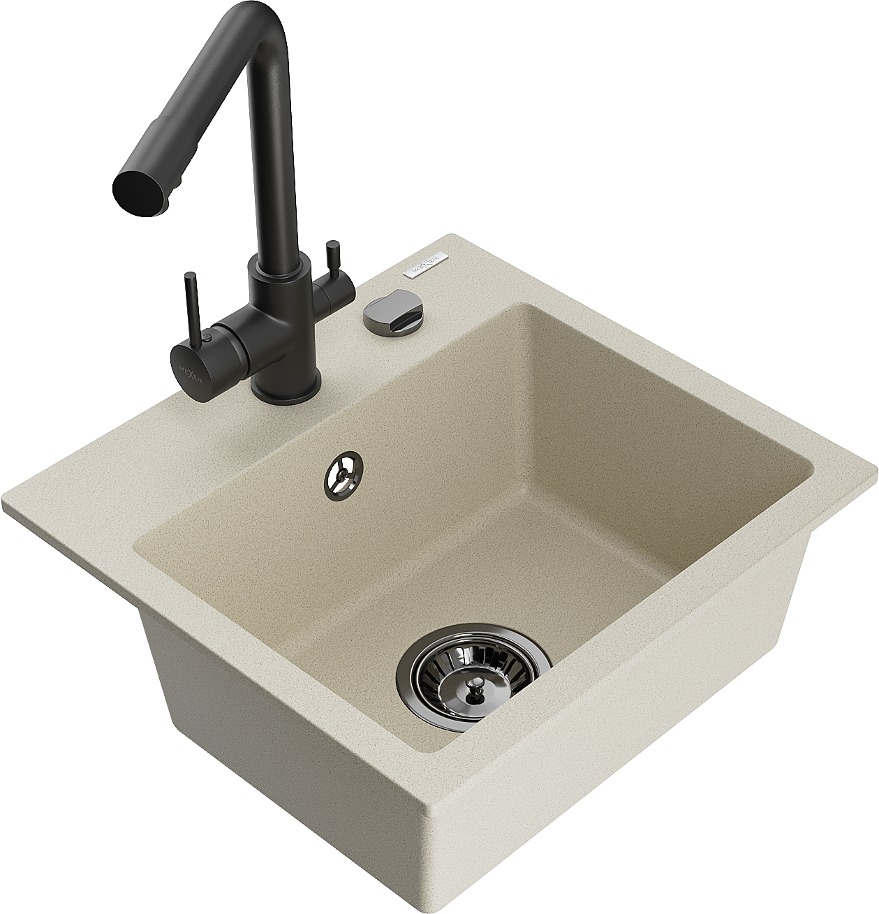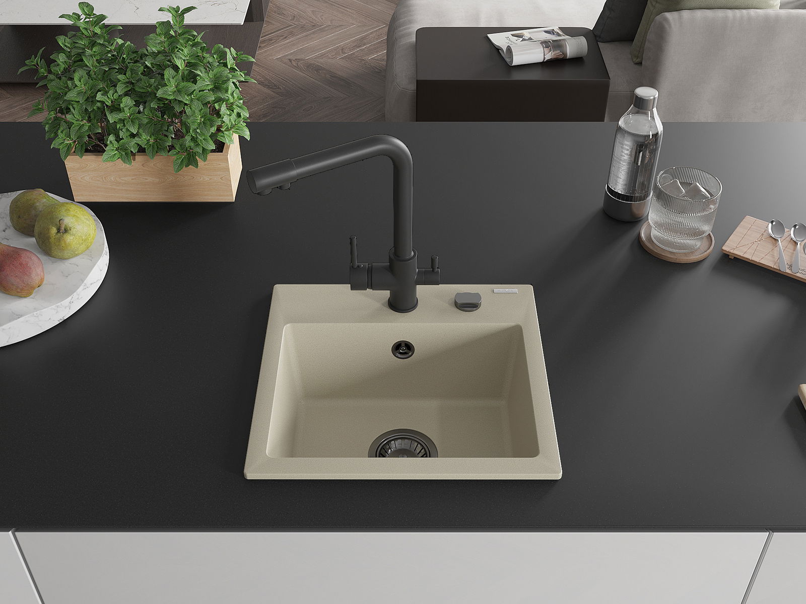 • Mexen Milo granitový dřez s 1 komorou s kuchyňskou baterií Duero, béžový - 6505-69-671600-70