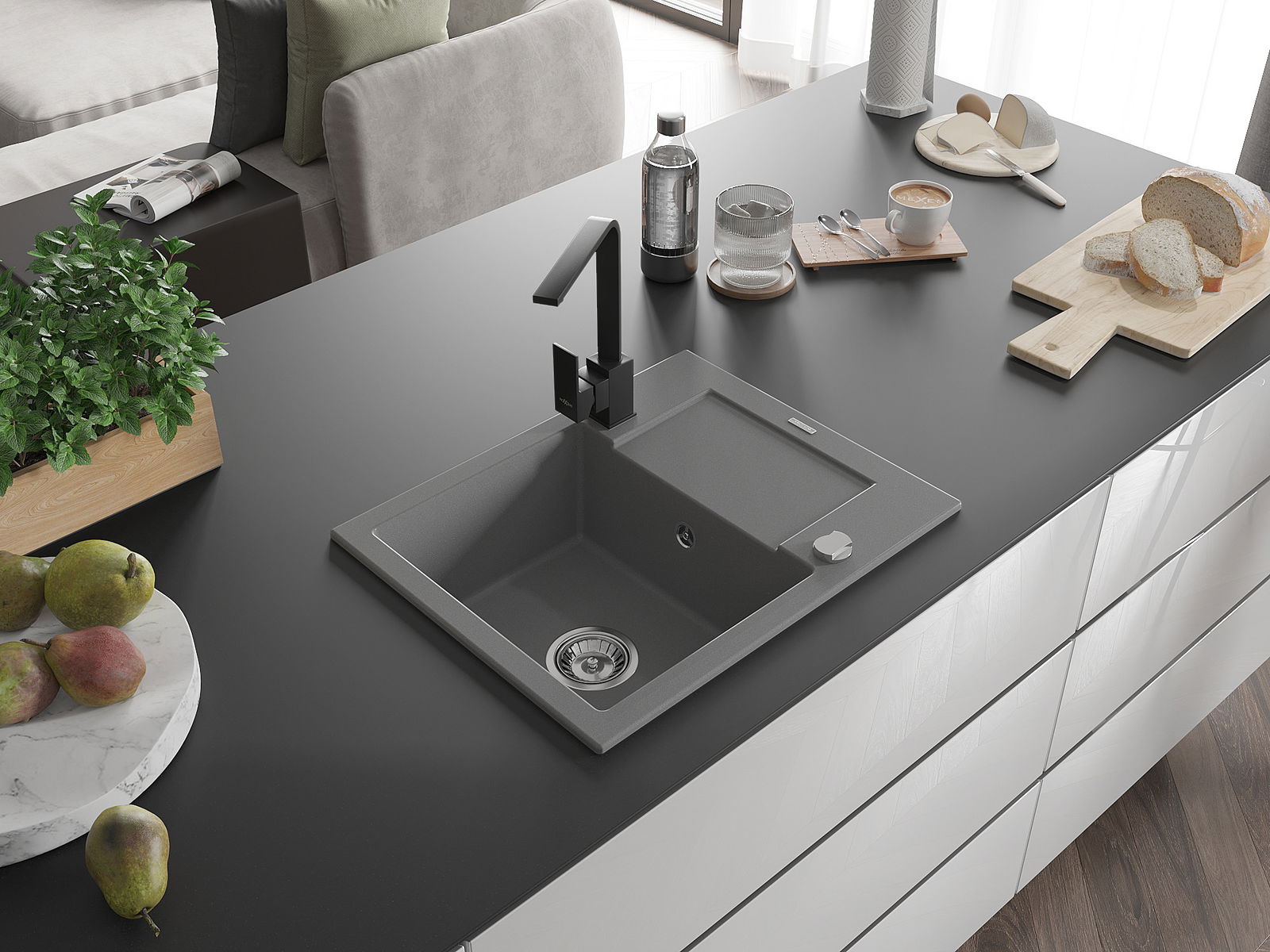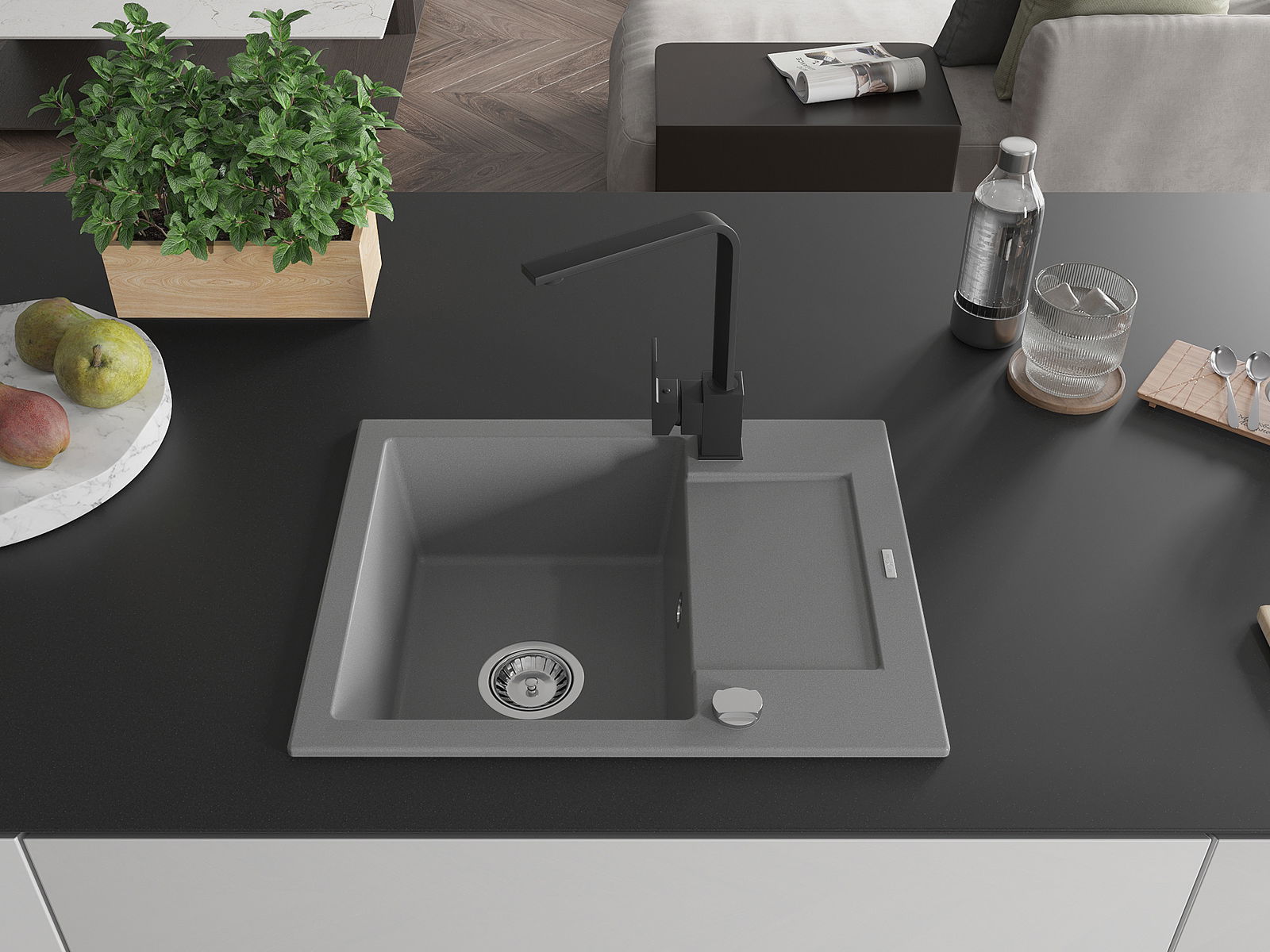 Dřez byl vyroben z vysoce kvalitního granitu. Představuje elegantní a především praktický doplněk každé kuchyně, bez ohledu na její styl. Vysoká kvalita a trvanlivost granitu zajišťují dlouholeté používání.