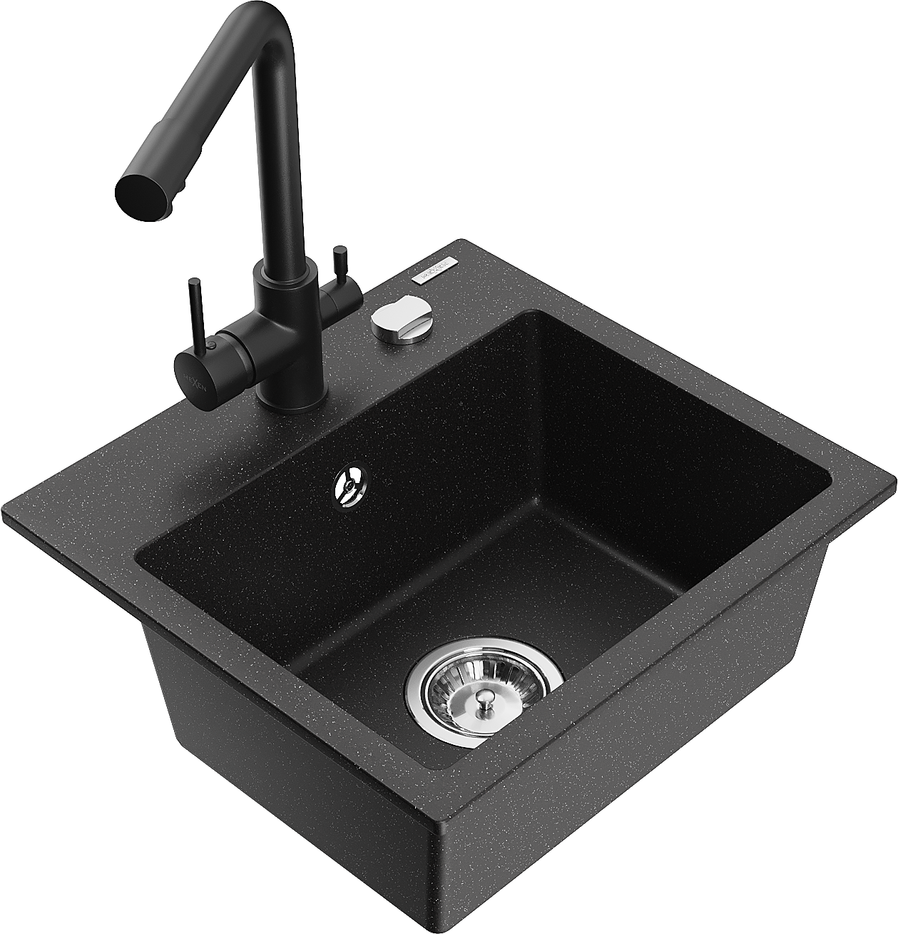 Mexen Milo granitový dřez s 1 komorou a kuchyňskou baterií Duero, černý/stříbrný metalík - 6505-73-671600-70