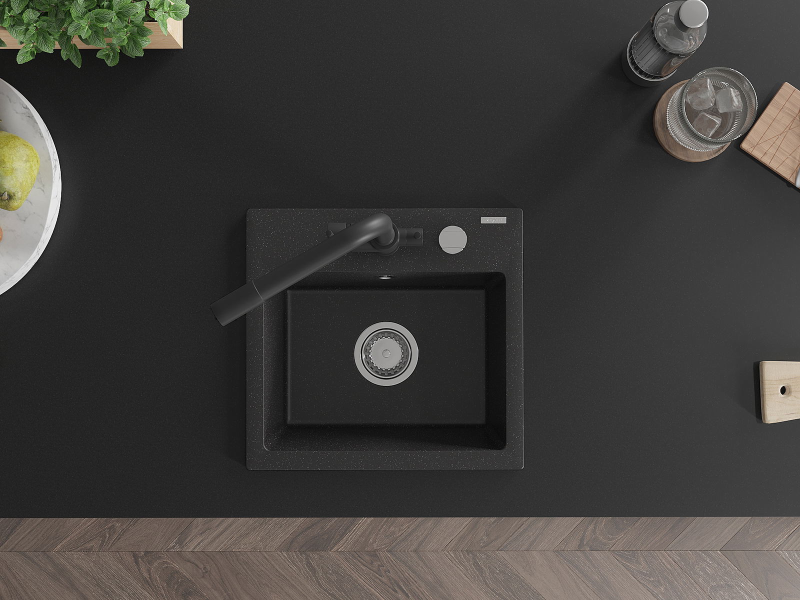 Dřez má předfrézovaný otvor o průměru 35 mm k samostatnému proražení. Může být použit například k montáži dávkovače na tekutinu, který eliminuje přítomnost plastových lahví v kuchyni a dodá jí elegantní finiš.