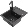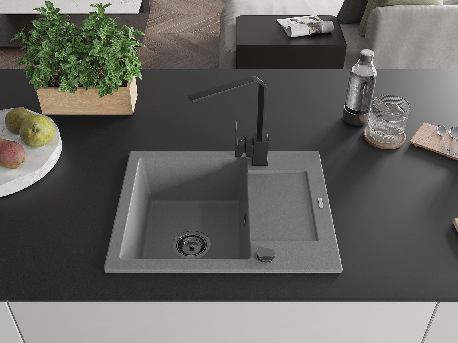 Mexen Enzo granitový dřez s 1 komorou s odkapávačem a kuchyňskou baterií Rita, šedý - 6506-71-670300-70-B