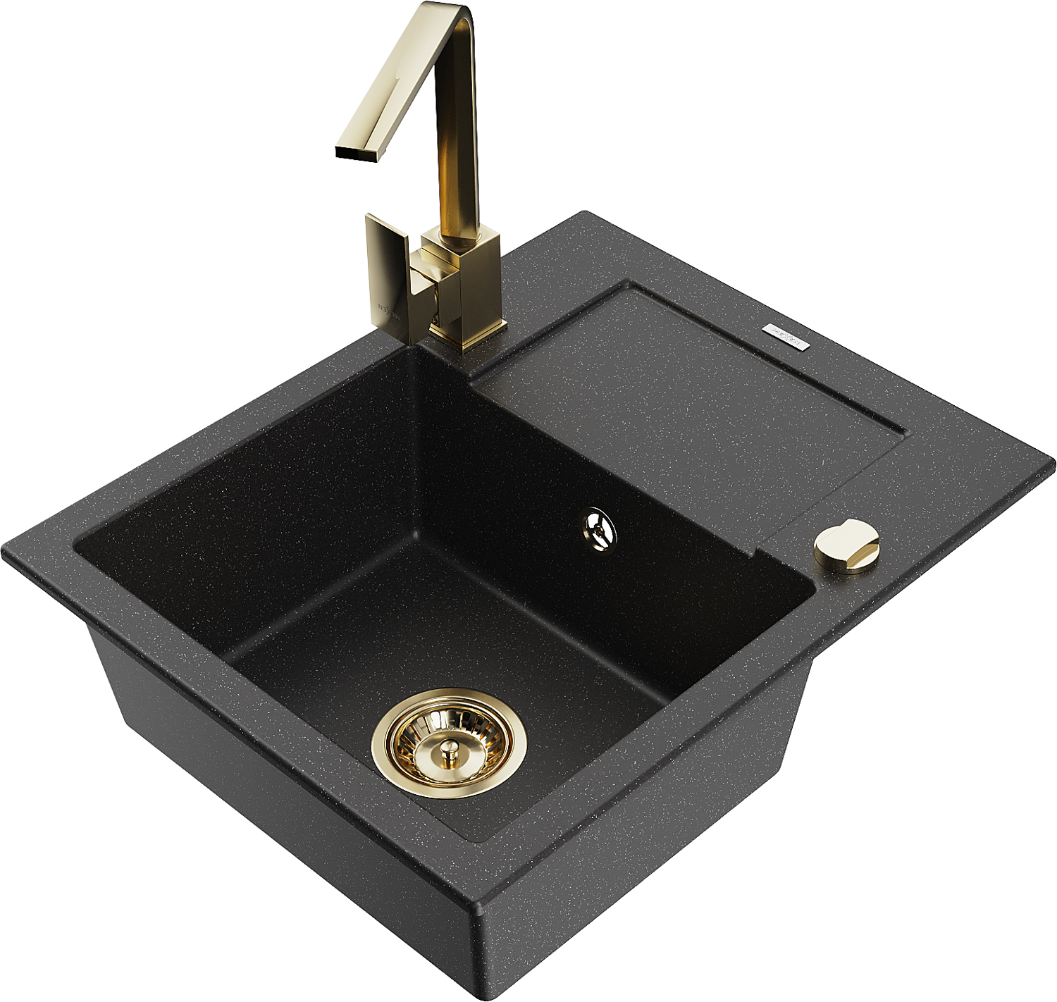 Mexen Enzo dřez granitový 1-komorový s odkapávačem a kuchyňskou baterií Rita, černý/stříbrný metalik - 6506-73-670300-50