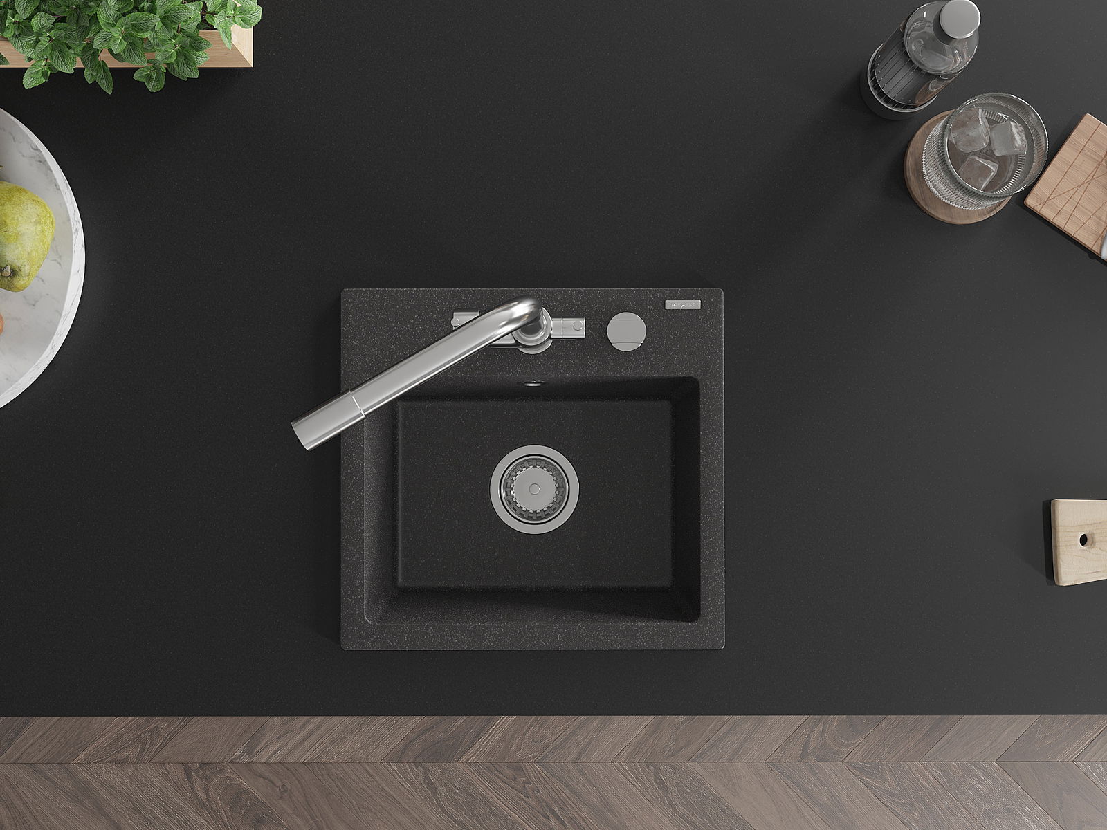 Mexen Milo granitový dřez 1-komorový s kuchyňskou baterií Duero, černý nakrapovaný - 6505-76-671600-00